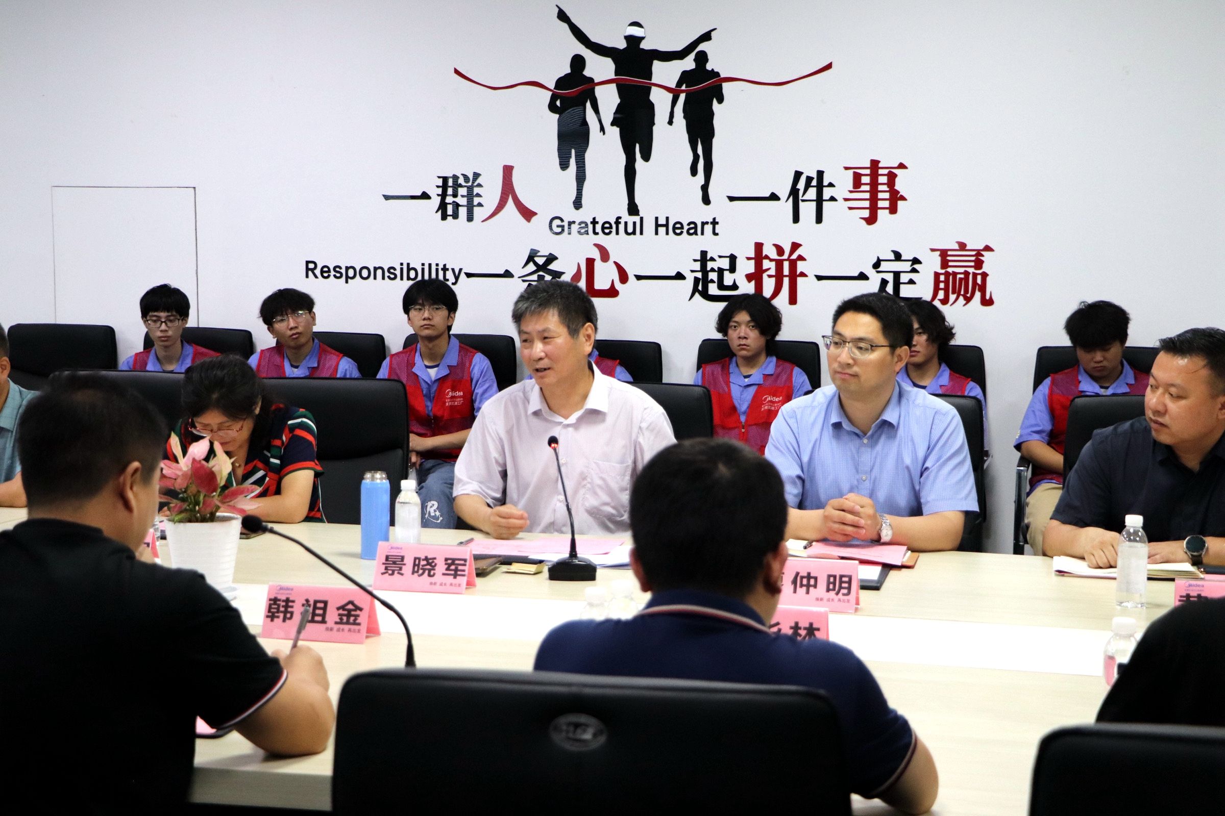 景晓军在讲话中指出,安徽师大办学历史悠久、学科门类齐全、科研实力突出;美的集团聚焦实体经济主战场,自主创新能力强、实力雄厚,双方互补性强,有着良好的合作前景。他希望双方进一步挖掘校企合作深度,共同推动双方在人才培养、科技创新、技术攻关、成果转化等方面的开展深度合作;进一步加大人才供需合作力度,强化校企协同育人,实现人才供给与需求的“无缝”对接,共同做好选才、育才、用才工作;希望同学们进一步提升对社会实践的认识高度,在社会观察、国情考察、产业体察中了解国情社情民情,真正做到在社会实践中受教育、做贡献、长才干、树形象。
