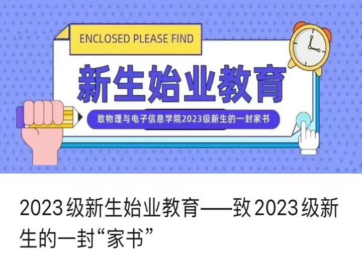 2023级新生的一封“家书”》,送上祝福和期许,提出要求、反复叮嘱。在“家书”最后,附录上物理学(师范)、自动化、通信工程、电子信息工程和光电信息科学与工程等相关专业的官方QQ群群号,实现新生未到校,先入班,未谋面、先交流。自新生集结完成之日起,聘任多位优秀高年级学生担任导生并加入QQ群答疑互动,引导新生提前熟悉师大“节奏”。除此之外,学院微信公众号“物电学生核聚变”特别推出“辅导员有话说”、萌新有声等系列推文,新生辅导员暖心寄语萌新们要珍惜大学时光,努力学习,踏实做事,在实践和磨练中不断成长。萌新们以“收到录取通知书的那一刻,我......”为主题,与录取通知书合影打卡,谈体会、话成长!