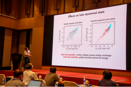 9月2日下午至9月5日为学术研讨会部分。本次会议共设了星系演化的大尺度环境、星系尺度的活动星系核反馈、活动星系核反馈:理论和数值模拟、活动星系核外流4个研讨专题,23个邀请报告,全面展示了近年来在活动星系核反馈研究领域的重要进展和研究成果。美国艺术与科学院院士、北京大学科维理天文与天体物理研究所所长何子山教授、美国马萨诸塞大学莫厚俊教授等40余位专家学者围绕活动星系核反馈这一主题做了学术报告。袁峰研究员在会议总结中鼓励国内外专家学者加强交流与合作,形成优势团队共同攻关,期待理论、观测、数值模拟“三管齐下”,在活动星系核反馈研究领域取得更好的成果。