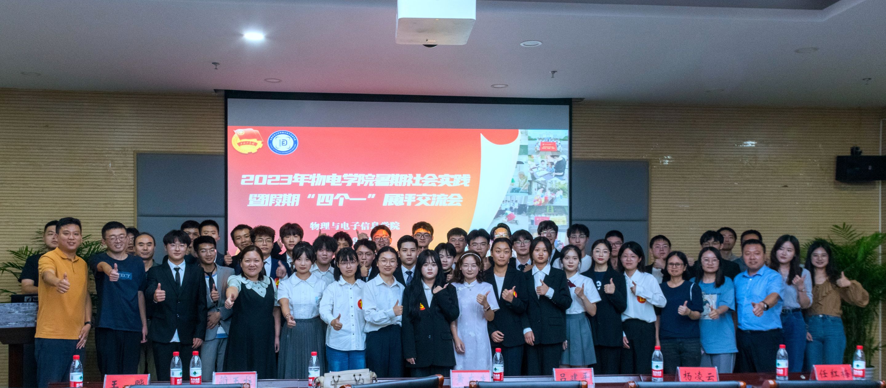 在物电楼304会议室召开2023暑期社会实践暨假期“四个一”展评交流会。学院党委副书记黄友生,暑期社会实践思政指导教师、马克思主义学院李文婷老师,物理学专业负责人吕建平,工科实训中心主任蔺玉柱,学院专业课教师杨凌云、王晔、任红梅,全体专兼职辅导员出席本次展评交流会。