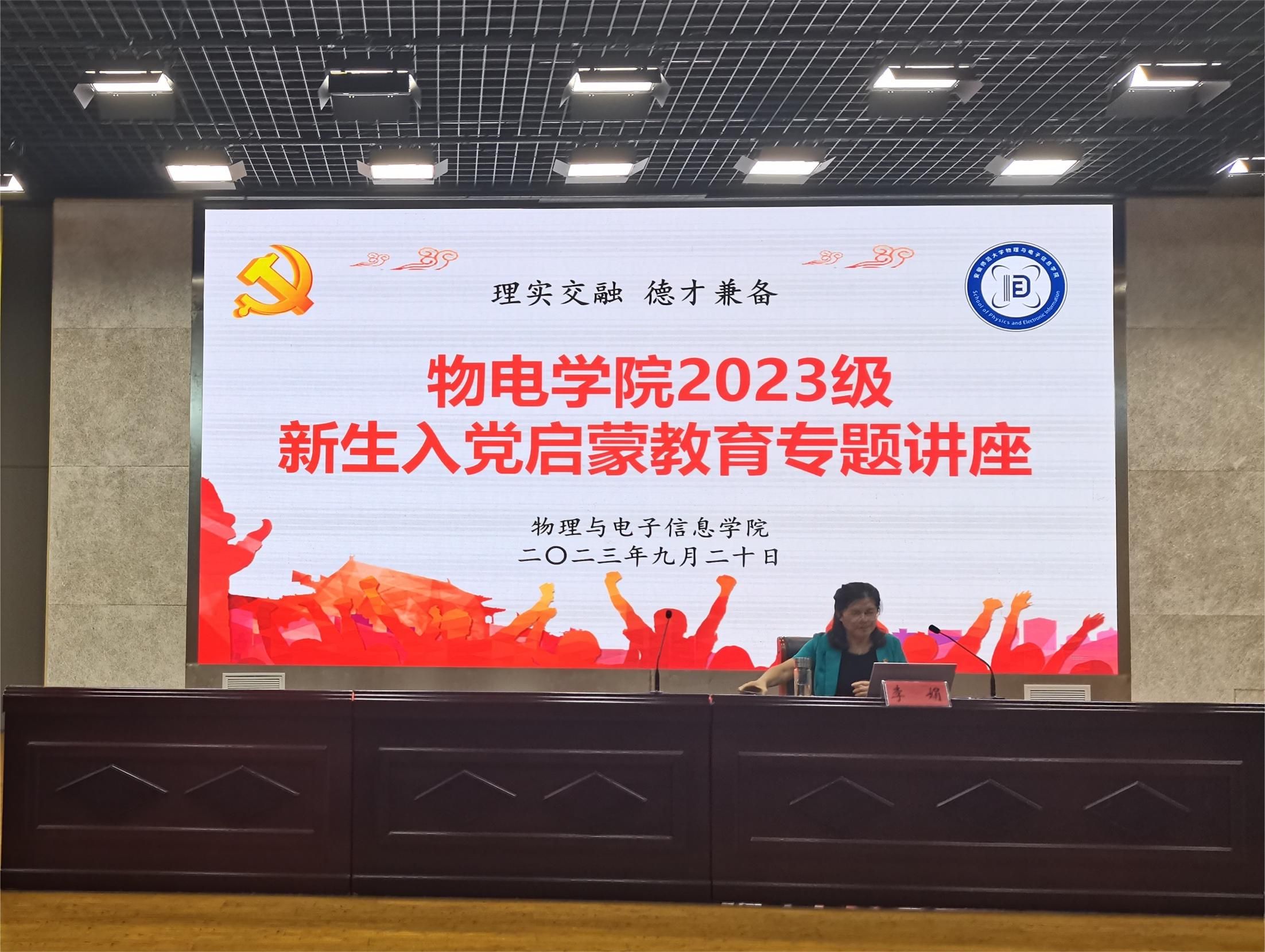 李娟以“中国共产党是什么、要干什么”为题为大家作入党启蒙教育专题报告,详尽介绍了中国共产党的光辉历史和伟大成就,讲解了入党条件、流程和注意事项,最后他围绕“当代青年怎么做”这个问题,对新生在入党、学习和生活等方面提出了明确要求。她强调,在入学之初就为大家夯实思想根基,增强对党的全面认识,明确努力方向,争取早日加入党组织,努力做到立大志、明大德、成大才、担大任。
