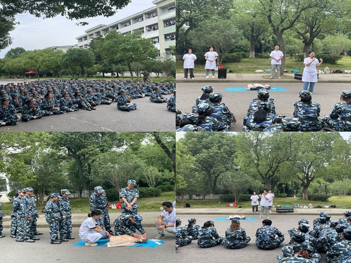 高度重视,科学组训。学院领导高度重视2023级新生军事训练工作,军事训练前,学院领导与承训教官多次沟通交流,叮嘱教官们要积极转变角色,严格施训、科学施训、安全施训,组织新生辅导员做好后勤保障等日常管理工作。训练过程中,学院党委书记李娟、副书记黄友生多次深入军训现场,看望慰问承训教官和参训新生,详细询问了军训期间得安全保障和军事训练开展情况,叮嘱同学们要将军训期间养成的良好品德和优良作风内化于心、外化于行,以更饱满的精神面貌投入今后的学习和生活,并对军训所取得的现阶段成果表示了肯定。学院在军训期间积极组织开展急救知识普及专题讲座,讲解心肺复苏和海姆立克急救法的操作要领,并通过操作人体模型为大家现场演示,提高了学生的基本急救、自救、互救能力,增强应对突发事件和危重病情发生时的应急处置能力,切实保障生命安全。