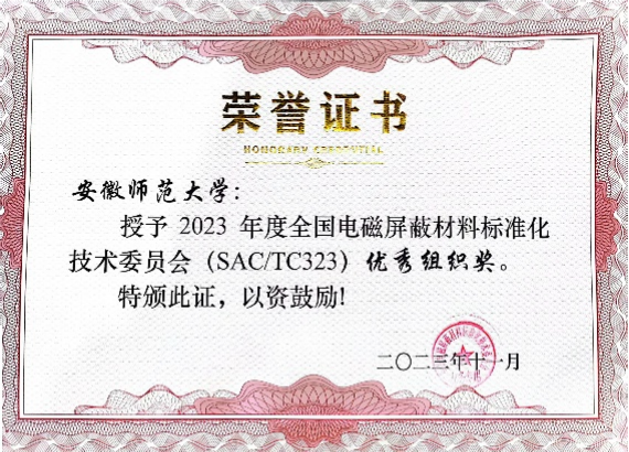 开幕式后,全国电磁屏蔽材料标准化技术委员会为获奖单位颁发了证书和奖杯。安徽师范大学被授予“优秀组织奖”、免费色情片