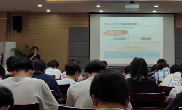 复杂跳跃系统是一类由连续时间变量和离散事件共同驱动的动态系统模型,广泛存在于现代制造系统之中。在报告会上沈浩教授介绍了复杂跳跃系统的几种类型,重点阐述了科研团队的最新研究成果。主要包括:针对快采样非线性Markov奇异摄动系统,考虑了混合的性能指标,给出了非脆弱控制器设计方法;针对慢采样半Markov奇异摄动系统,给出了离散半Markov奇异摄动系统模型,建立了驻留时间依赖的稳定性条件和控制器设计方法,提出一种新的解耦方法;针对隐Markov奇异摄动系统,给出了离散隐Markov奇异摄动系统模型,建立基于隐Markov模型控制器设计方法。报告结束后,与会师生和沈浩教授就相关问题展开了热烈的讨论和交流。