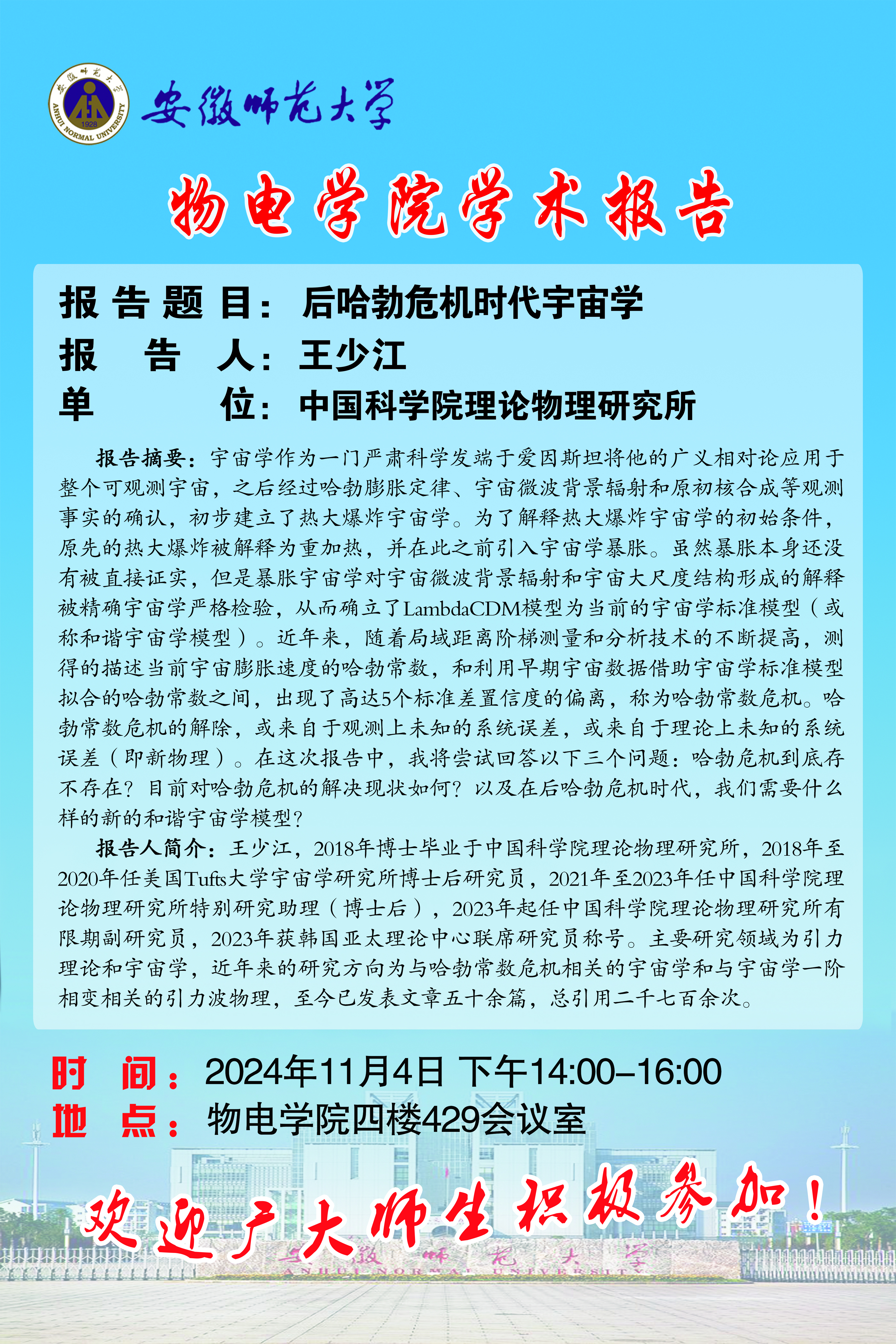 地址:花津校区-安徽省芜湖市九华南路189号 邮编:241000 电话:0553--3869894