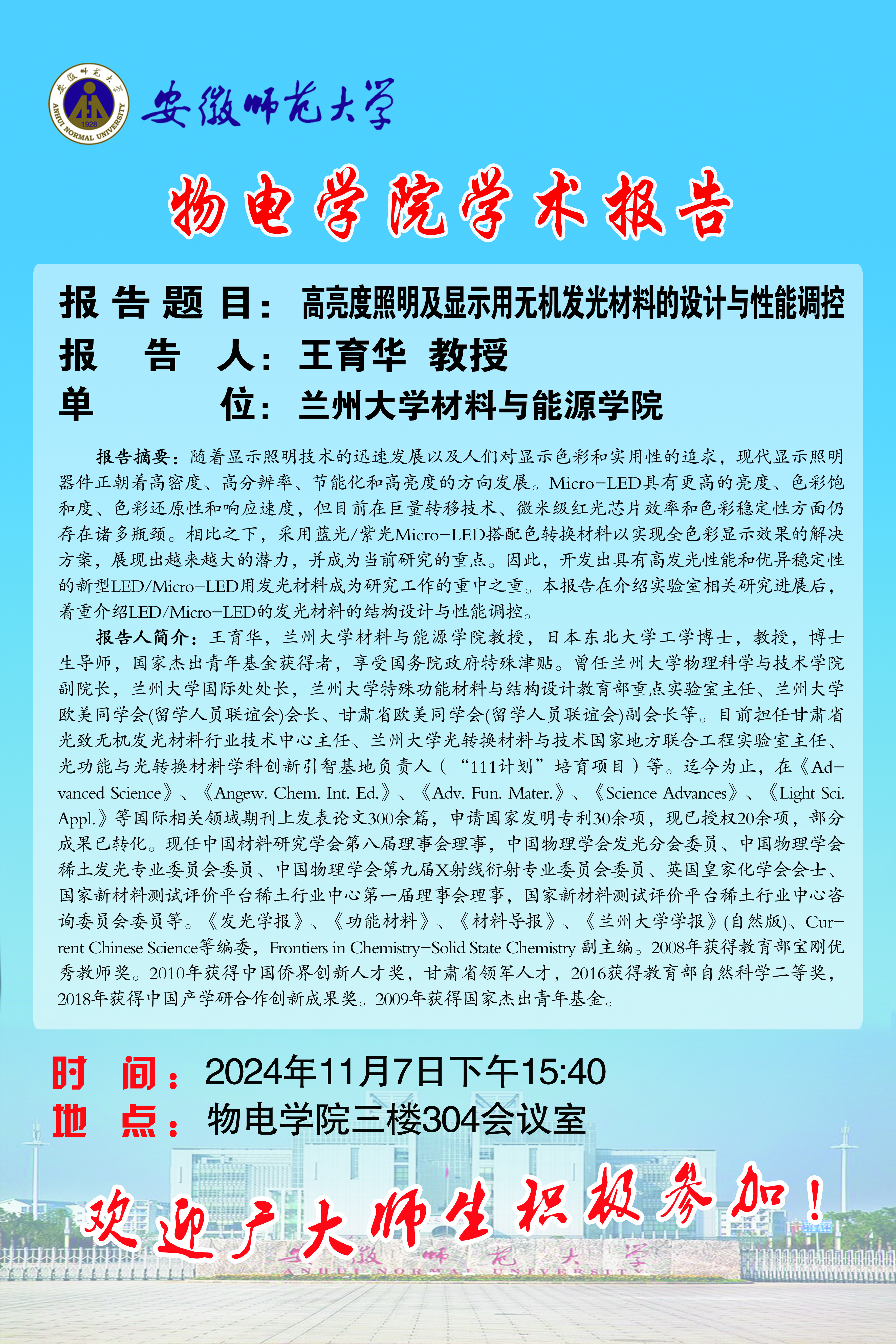 地址:花津校区-安徽省芜湖市九华南路189号 邮编:241000 电话:0553--3869894