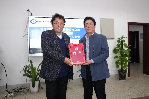 高水平大学建设作出新的更大贡献。科研处长徐彬教授宣读了光电信息材料功能调控与应用安徽省重点实验室第二届学术委员会组成名单,高峰为各位到会委员颁发了聘书。