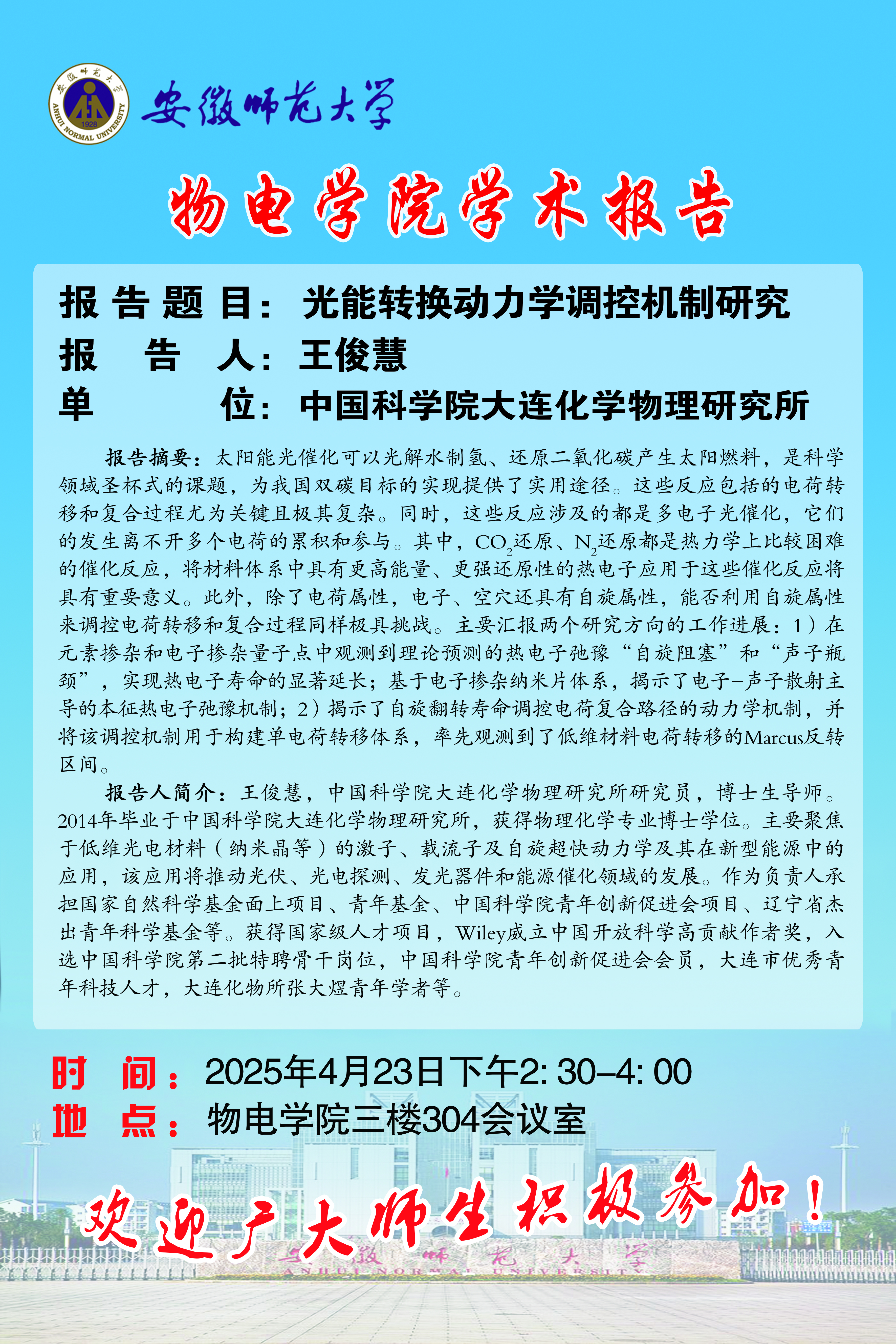 地址:花津校区-安徽省芜湖市九华南路189号 邮编:241000 电话:0553--3869894