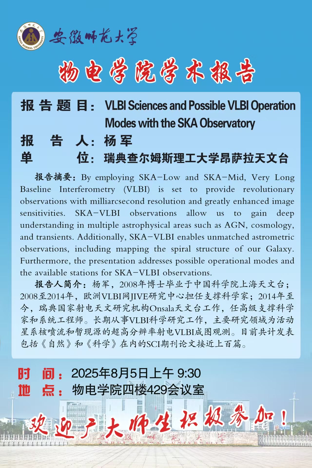 【学术预告】物电讲坛2025年第32期:VLBI Sciences and Possible VLBI Operation Modes with the SKA Observatory