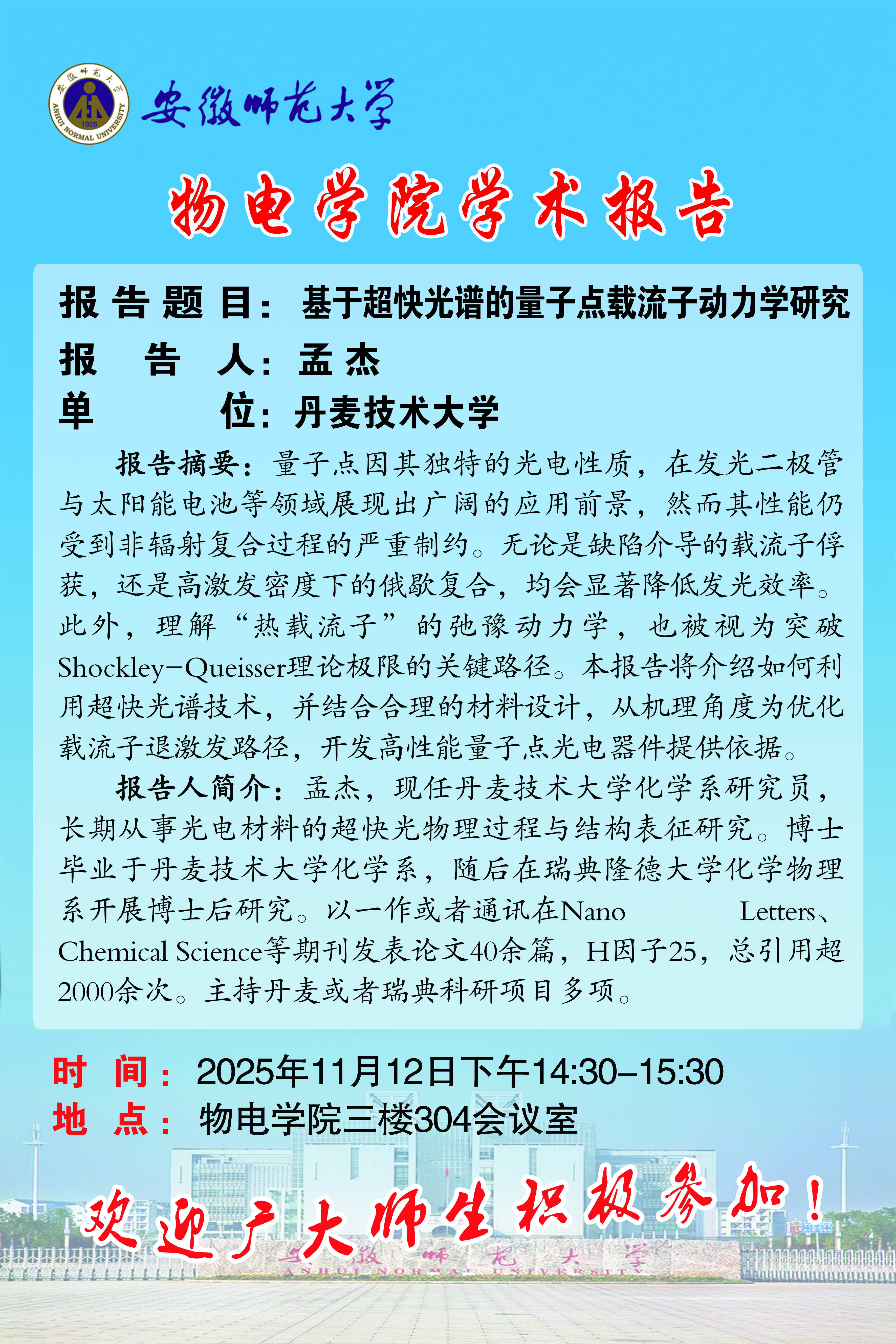 地址:花津校区-安徽省芜湖市九华南路189号 邮编:241000 电话:0553--3869894