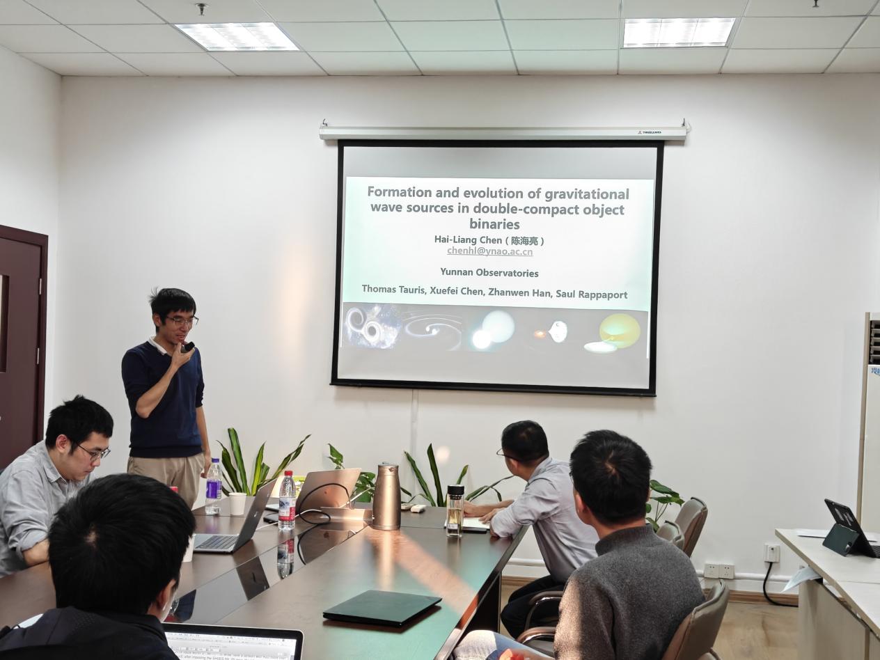 邀请,中国科学院云南天文台研究员陈海亮于11月12日来校进行学术交流,并做了题为《Formation and evolution of gravitational wave sources in white dwarf binaries and neutron star binaries》的学术报告。报告会在免费色情片