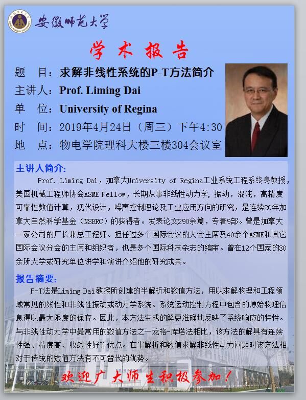 加拿大Regina大学Liming Dai教授应邀来学院做学术报告