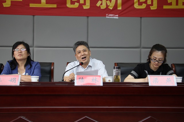 陆林副校长做总结发言,他从开班意义、创新要素以及如何培养创新能力三个方面,对同学们提出建议和期望。一是要培养兴趣,兴趣对一个人的成长和发展有至关重要的作用,在学习和交流的过程中培养创新兴趣,促进自我能力提升,这是迈向成功的重要开始。二是要善于学习,主动接受创新创业培训班老师的指导和教育,及时汲取相关知识完善自身素质,这是创新能力培养的核心要素。三是要学会交流,在培训班的学习中抓住与老师和同学们的交流机会,不断发现和改进自身不足,提高自身能力,并影响和带动身边的更多的同学参与到双创中成为国之栋梁,这是实现理想的关键方式。