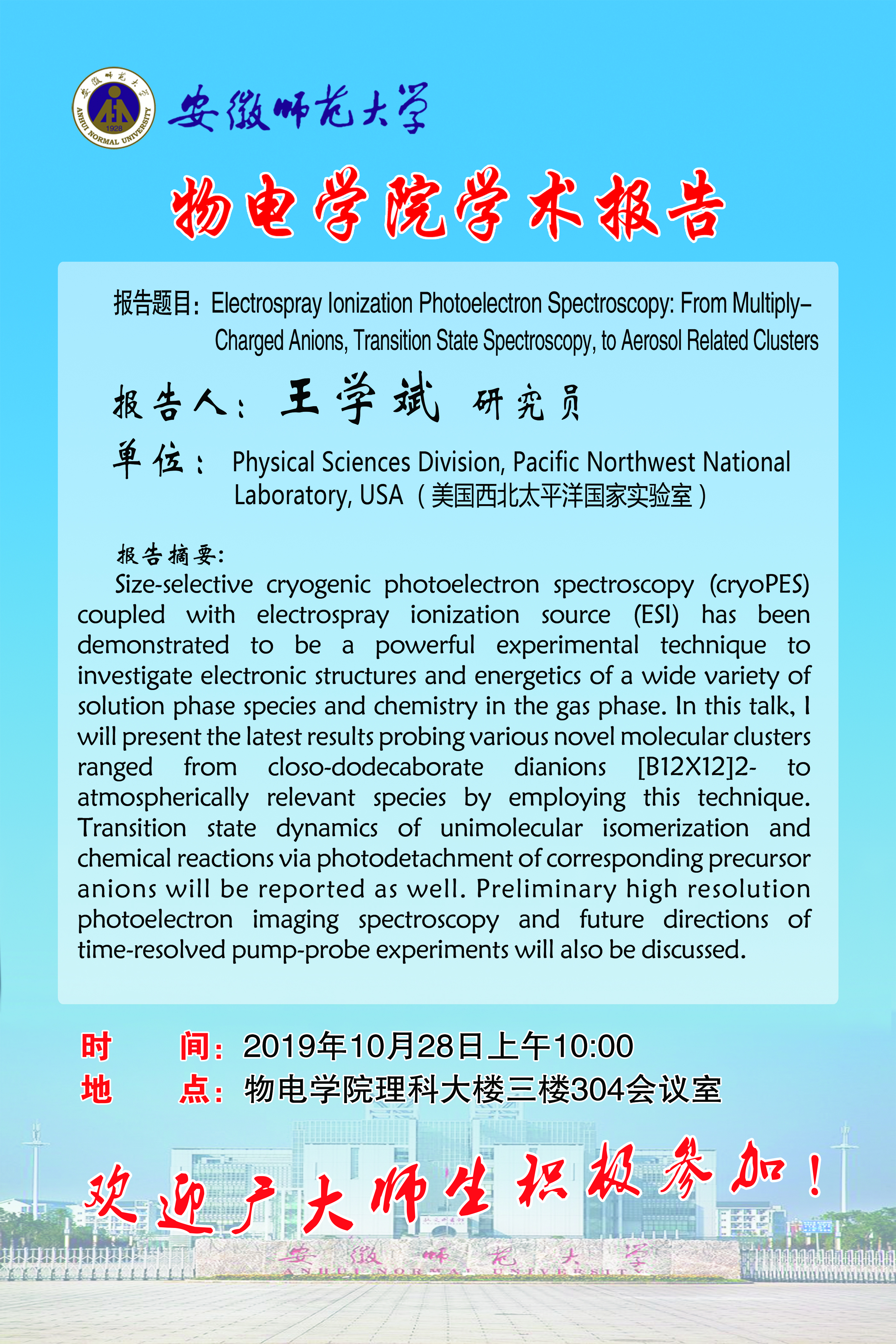 地址:花津校区-安徽省芜湖市九华南路189号 邮编:241000 电话:0553--3869894