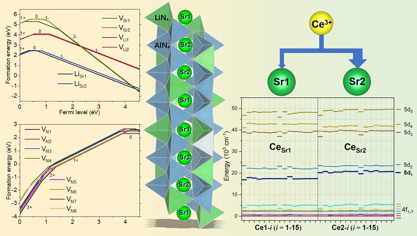 宁利新课题组近年来围绕稀土发光材料光谱性质的理论分析和第一性原理计算开展了系列研究工作。近日,该课题组在期刊《The Journal of Physical Chemistry C》上发表了有关SrLiAl3N4中本征点缺陷和掺杂Ce3+离子的热力学及光谱特性的研究成果。