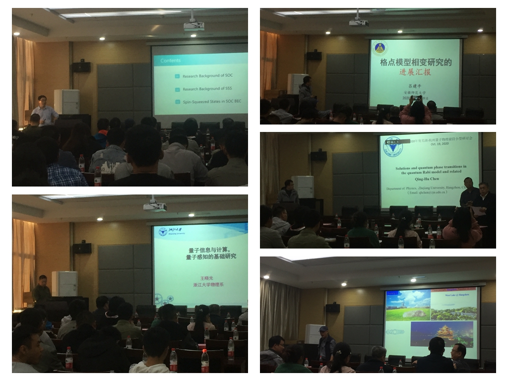 随后,张云波教授为大家作了题为《Spin squeezing in a spin-orbit coupled Bose-Einstein condensate》的报告。在报告中,张云波教授介绍了自旋-轨道耦合和自旋压缩态的研究进展,并介绍课题组在冷原子系统、光晶格和玻色-爱因斯坦凝聚等领域的研究成果。王晓光教授作了题为《Phase-space geometric Sagnac interferometer for rotation sensing》的报告,具体介绍了量子计算、量子信息与纠缠和量子传感器等方面的最新研究进展。陈庆虎教授作了题为《Solutions and quantum phase transitions inthe quantum Rabi model and related》的报告,介绍了Rabi-Stark模型和QRMs方法的研究进展和研究成果。免费色情片
