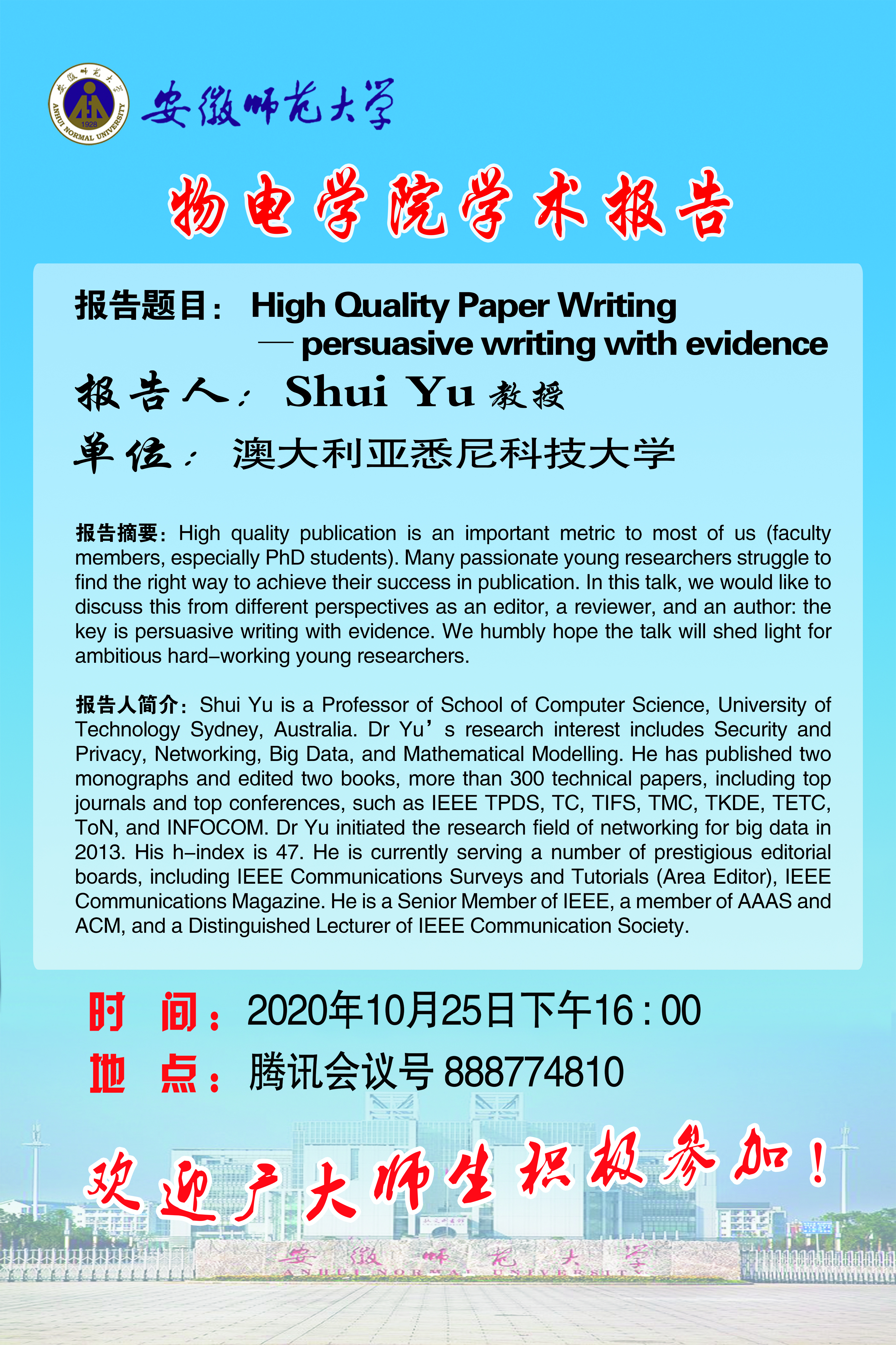 地址:花津校区-安徽省芜湖市九华南路189号 邮编:241000 电话:0553--3869894