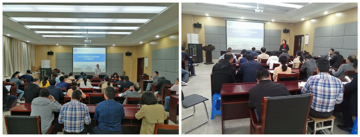 科研工作推进会于4月21日下午在335会议室举行,学院党委书记李娟、院长郑贤锋、科研副院长宁利新、教学副院长张爱清以及各平台负责人、老师参加了此次会议。会议由宁利新主持。