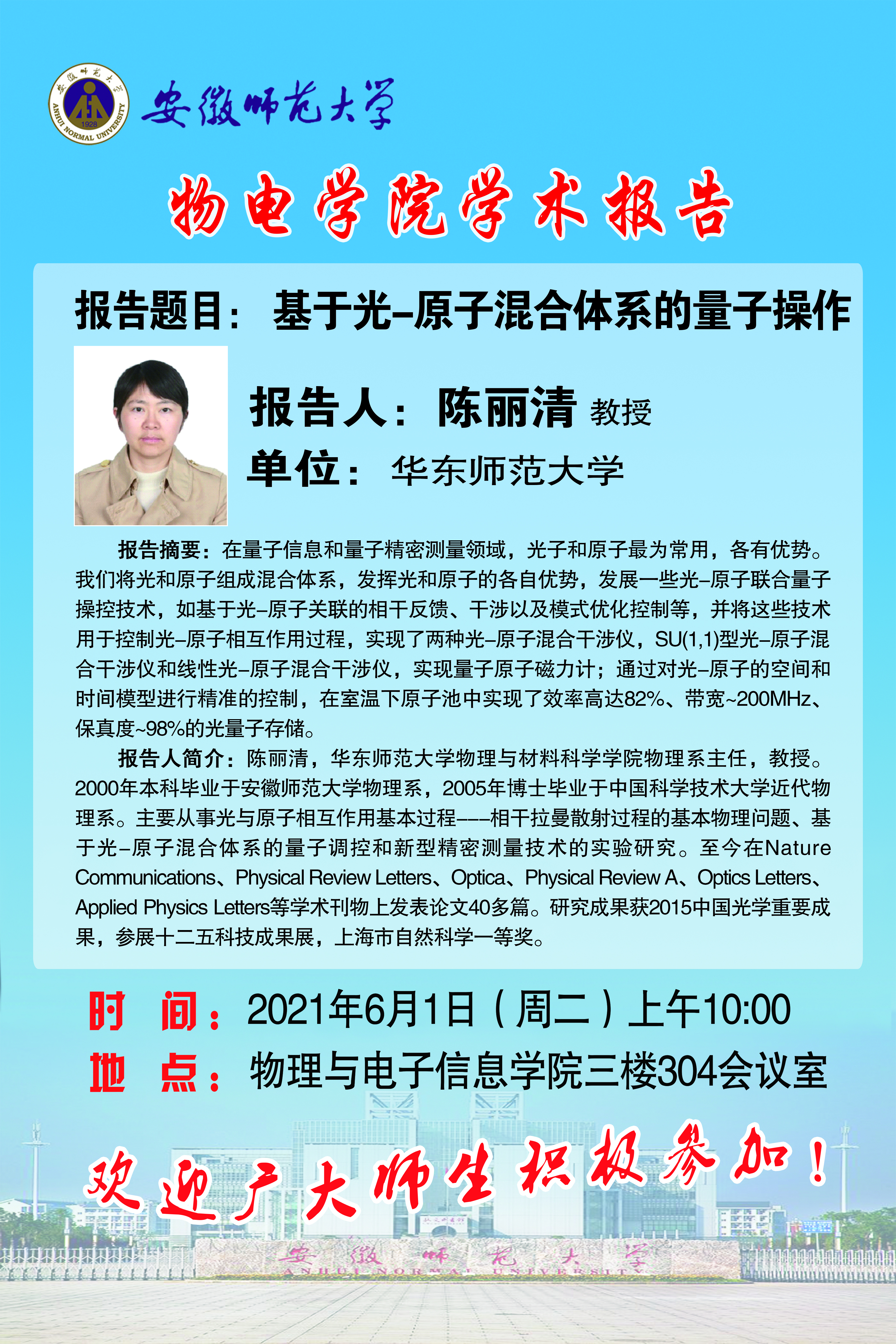 地址:花津校区-安徽省芜湖市九华南路189号 邮编:241000 电话:0553--3869894