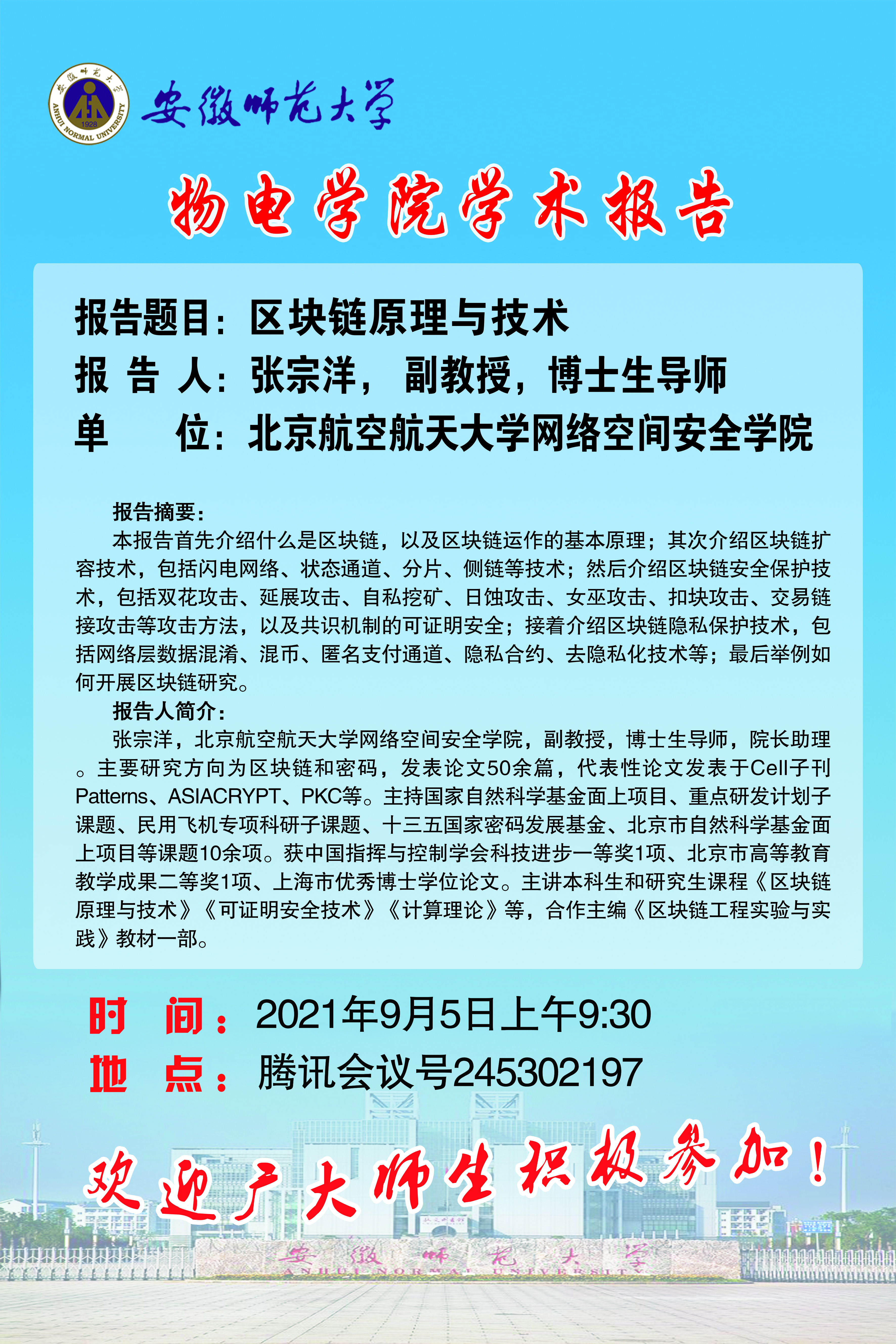 地址:花津校区-安徽省芜湖市九华南路189号 邮编:241000 电话:0553--3869894