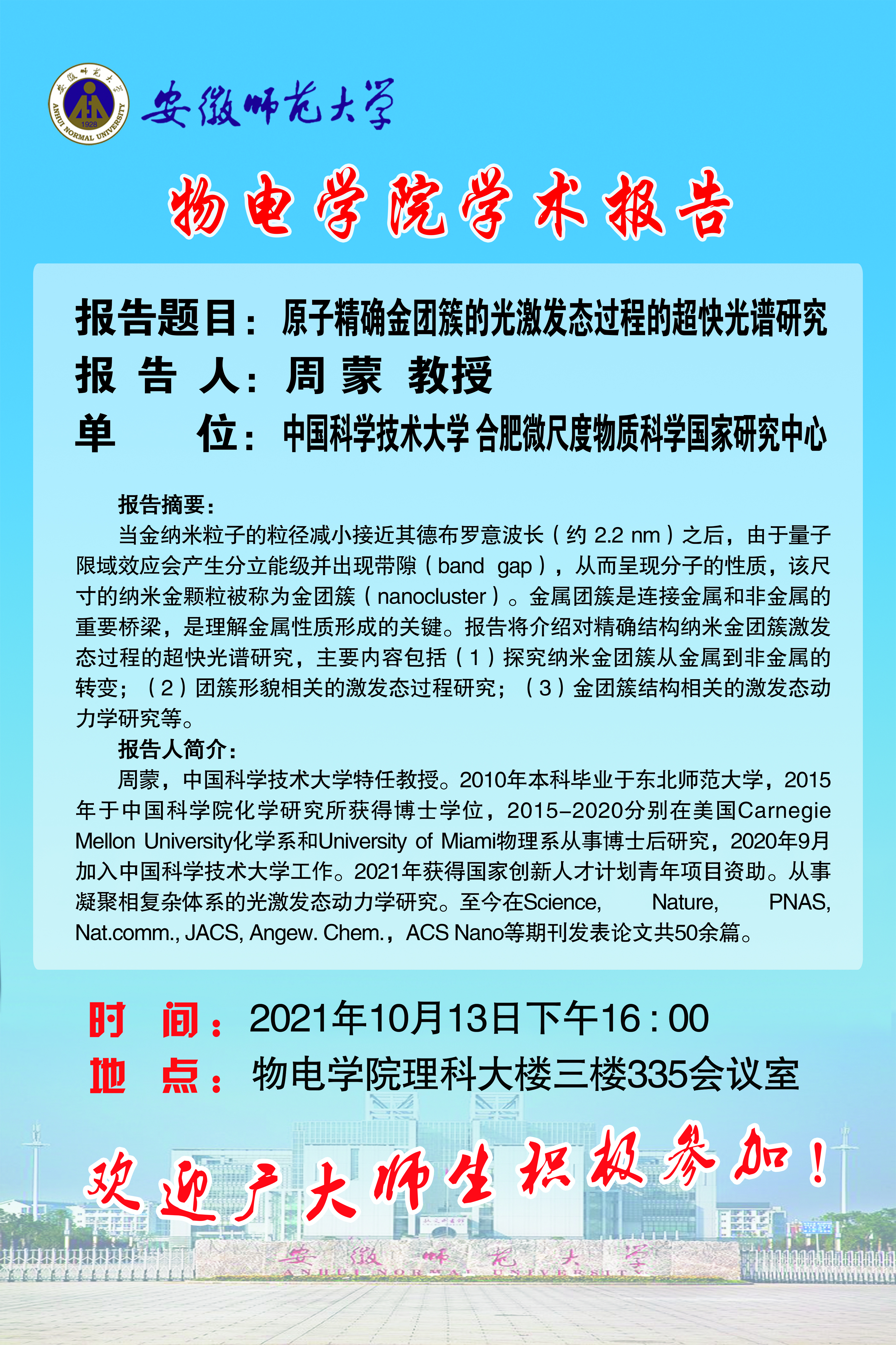 地址:花津校区-安徽省芜湖市九华南路189号 邮编:241000 电话:0553--3869894