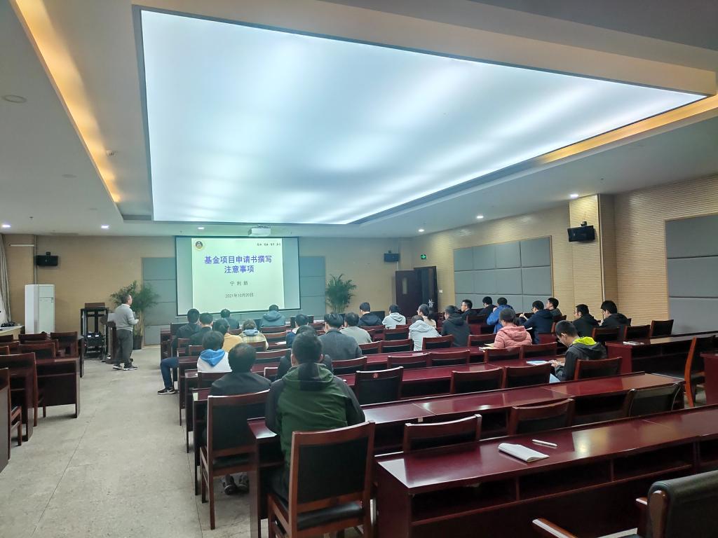 会上,宁利新教授结合自己的基金项目申请书选题和撰写经验,为青年教师讲解了选题、摘要、立论依据、研究目标等的撰写技巧和注意事项,令青年教师受益匪浅。宁教授提醒指出科学研究活动是要有连续性的,功夫要多下在平时,多思考、勤梳理、常总结、练好内功,做到成竹在胸,意在笔先。