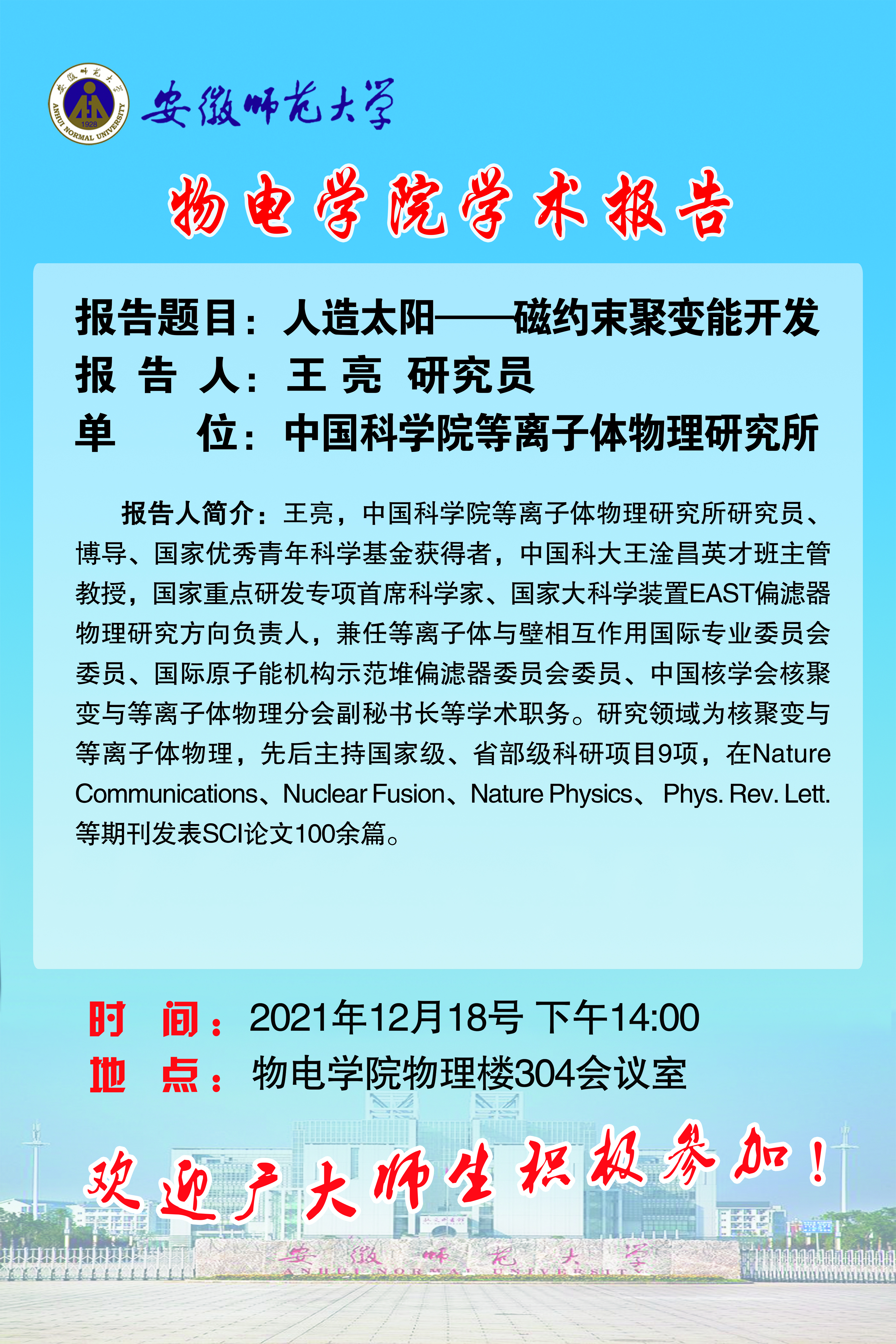 地址:花津校区-安徽省芜湖市九华南路189号 邮编:241000 电话:0553--3869894