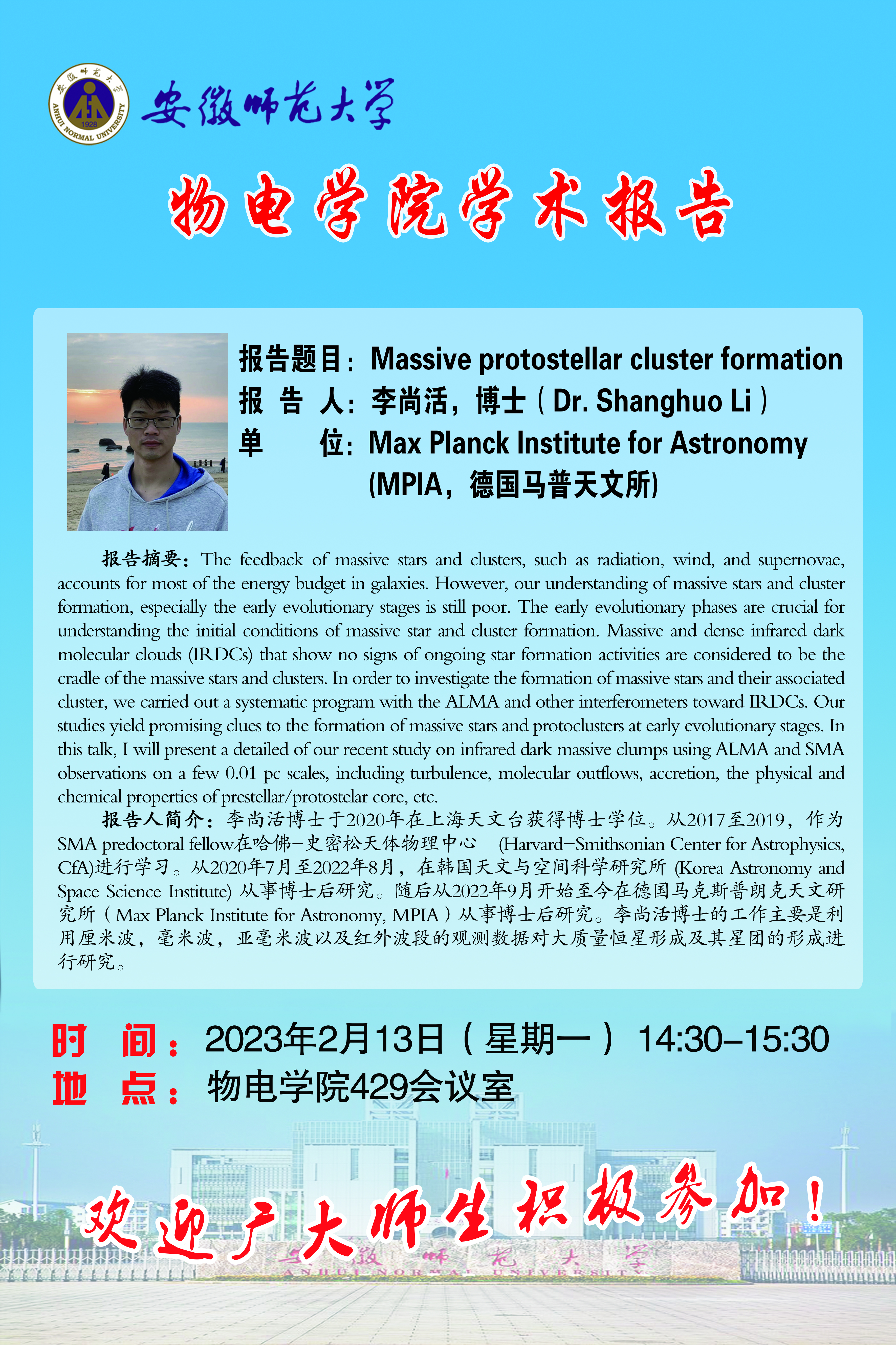 【学术预告·物电讲坛】李尚活:Massive protostellar cluster formation