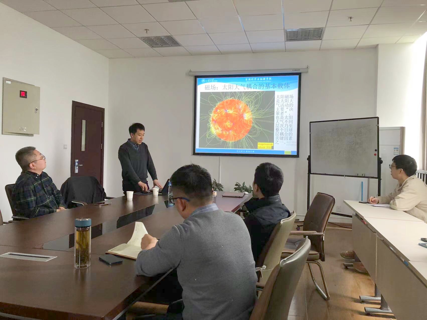 报告会上,黄正化教授简要介绍了太阳大气的基本结构以及太阳大气色球日冕间强耦合的根本原因。通过总结相关观测结果,说明太阳低层大气活动和日冕活动之间往往不是简单的两两耦合,而是多系统多链条的耦合过程。会上,黄教授结合相关研究成果阐述了太阳低层大气活动对日冕活动的决定性影响,如色球日珥/暗条的爆发往往是耀斑、CME、日冕喷流等日冕活动的关键、低层大气活动还可能为日冕活动创造适宜的磁流体环境;日冕活动对低层大气的影响,如可通过热传导、下行波动、高能电子流、物质冷凝等方式反过来影响低层大气,从而完成能量和物质在日面上的重新分配、太阳大气磁结构的重新塑造、日珥暗条等结构的物质填充等物理过程;宁静太阳大气中低层大气结构和日冕结构存在的物质和能量关联。报告会结束后,与会师生就相关问题同黄正化教授展开了热烈讨论和交流。