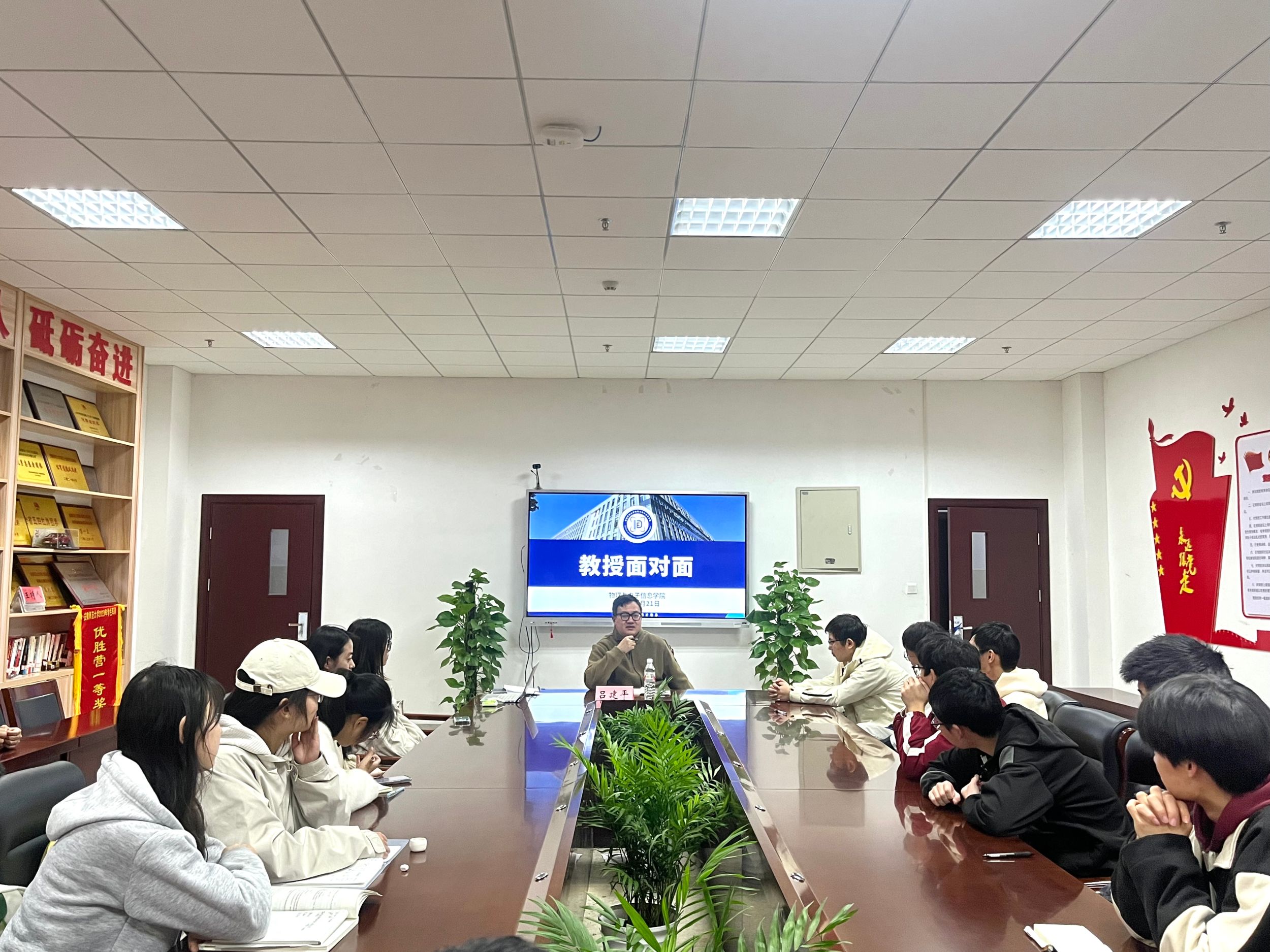 师生交流面对面,学业帮扶心连心。为进一步加强学风建设,及时发现、解决学生学习过程中出现的问题,努力实现“一个都不要掉队”的工作目标。3月21日晚,学院在物电楼308党员活动室继续开展“教授面对面”特色育人品牌活动。物理学专业系主任吕建平、2022级物理学专业部分学生参加,辅导员刘敏主持活动。
