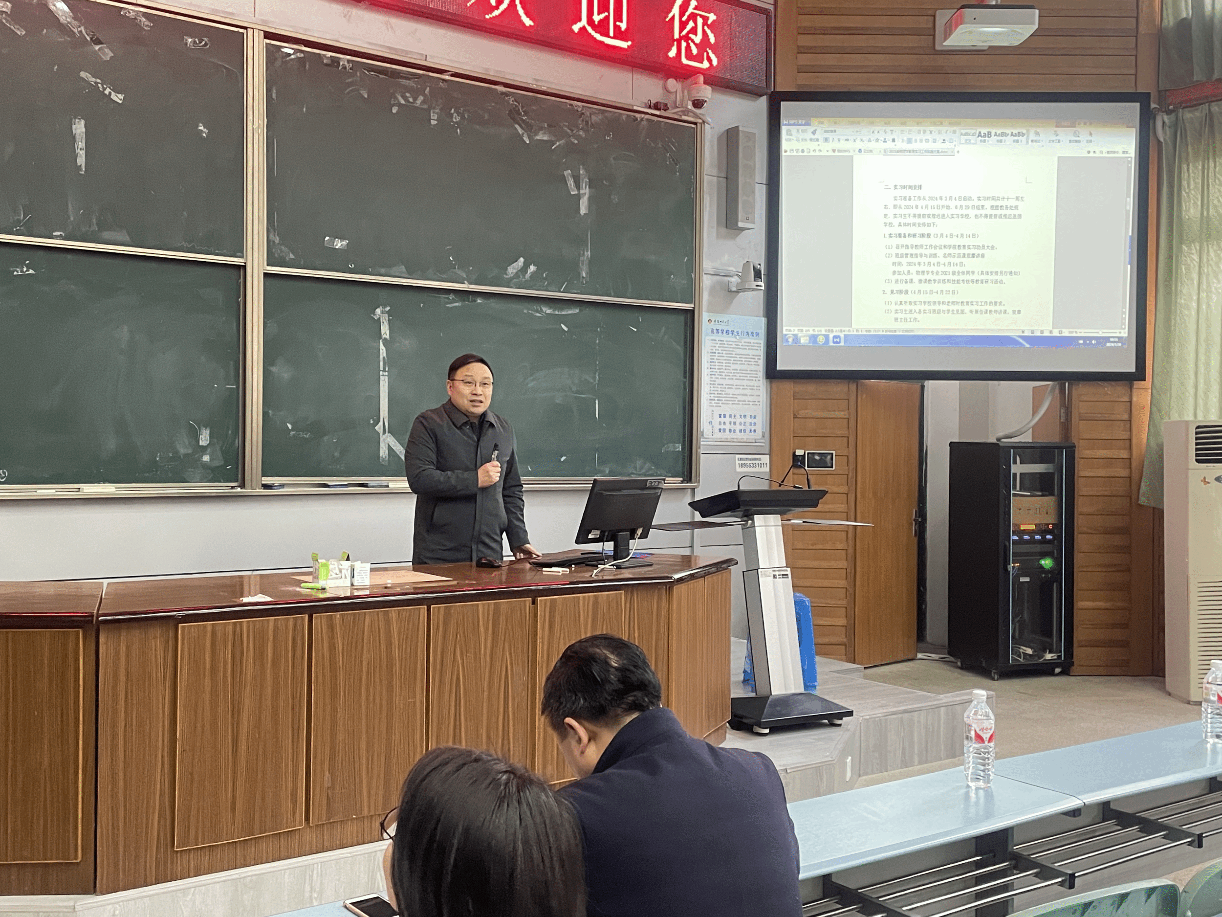 于教学楼2010105教室组织召开2021级物理学(师范)专业教育实习动员培训会。学院党委副书记黄友生,物理教师教育研究室主任、专业教师汪志荣,2021级物理学(师范)专业辅导员及全体同学参会,会议由学院教学副院长张爱清主持。