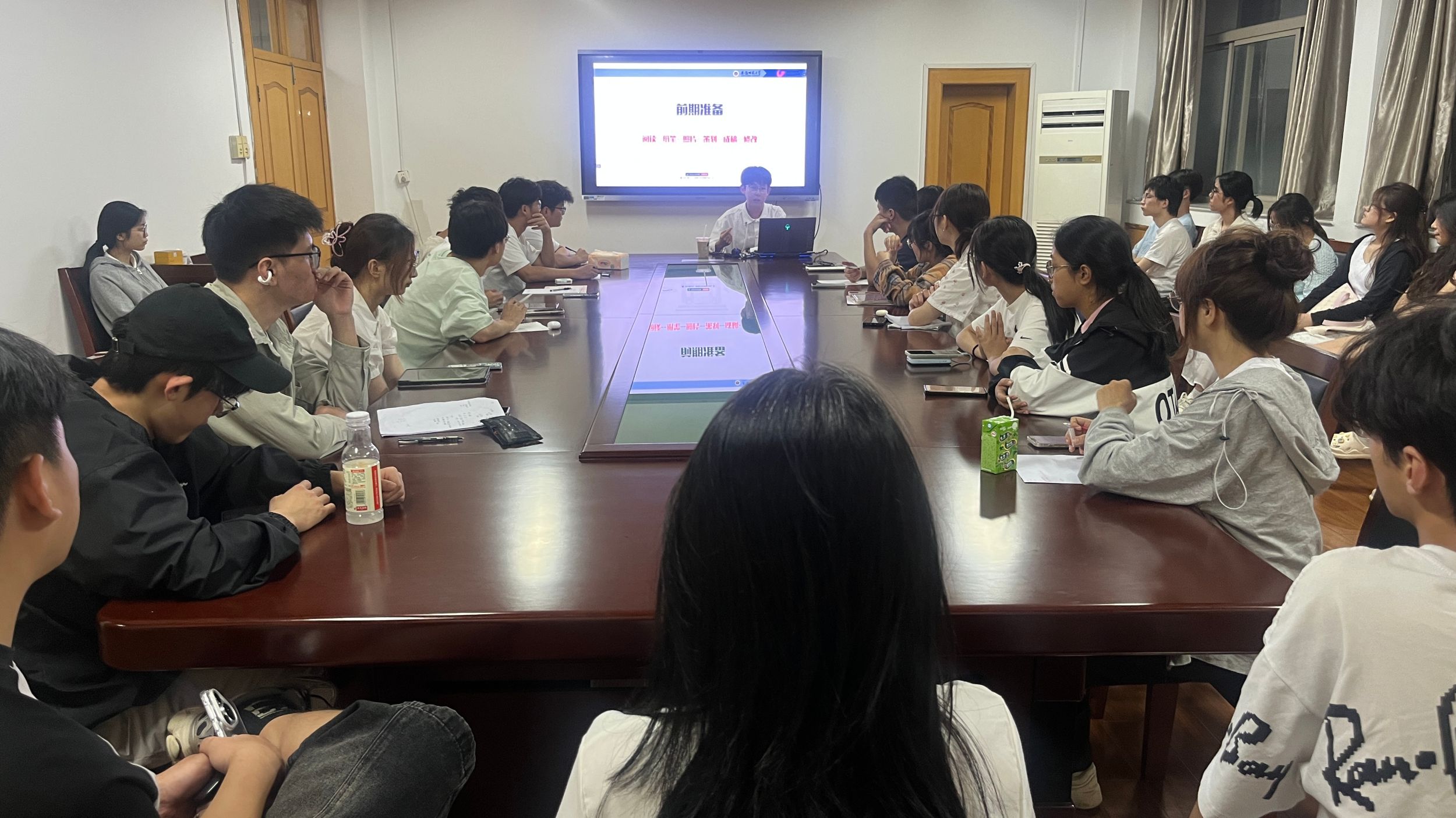 于学苑6号楼408会议室召开2024年暑期社会实践拍摄与写作专题培训会。校学生会主席团成员刘赜玮、学院2024暑期社会实践团队全体队长、宣传员参加活动。