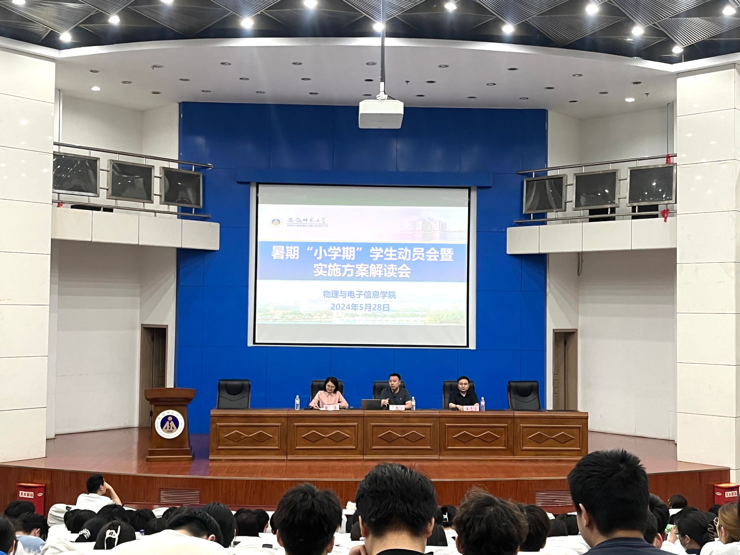 在敬文报告厅开展暑期“小学期”学生动员会暨实施方案解读会。学院教学副院长张爱清、院党委副书记黄友生、物理系副主任汪志荣、辅导员刘敏以及相关年级专业学生参加会议,会议由张爱清主持。