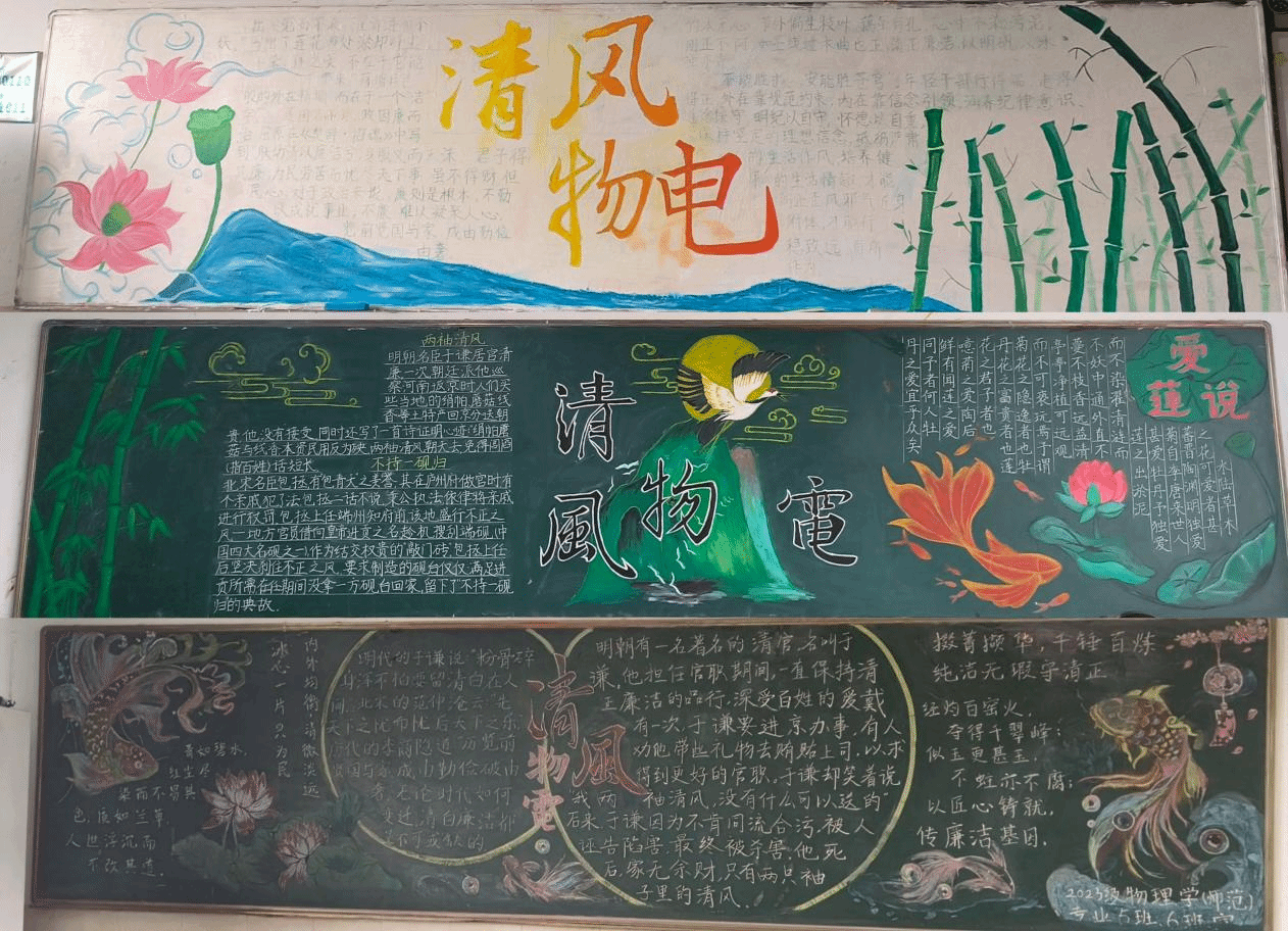 学院在毕业季立足新时代廉洁文化“一院一品”创建活动,线下2023级物理学(师范)专业各班级围绕“清风物电”的主题,对所属责任教室进行了精心布置和装饰,从墙面的设计到角落的布置,从板报的绘制到饰品的点缀,充分营造了清风正气满校园的良好育人环境;线上结合“物电学生核聚变”公众号等平台,发布《清风启程,行稳致远:致免费色情片