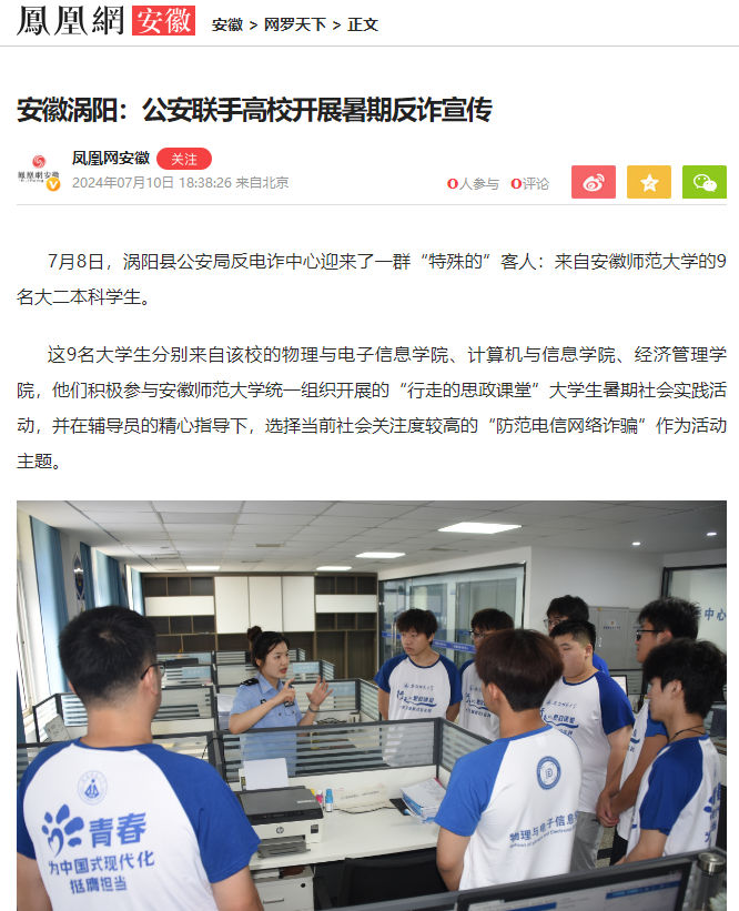 、计算机与信息学院、经济管理学院,他们积极参与安徽师范大学统一组织开展的“行走的思政课堂”大学生暑期社会实践活动,并在辅导员的精心指导下,选择当前社会关注度较高的“防范电信网络诈骗”作为活动主题。