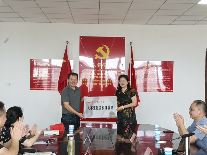 座谈会上,李娟与王国兵为暑期社会实践基地揭牌。