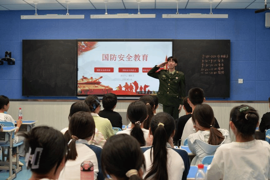 支教队员、退伍军人2022级电子专业的潘析文曾在2020-2022年服役于武警北京总队,参与建党百年、北京冬奥会、全国两会安保工作,但当老师,他还是第一次。当他穿着一身墨绿色的军装走上讲台,孩子们的眼睛“忽”地一下亮了,或许从来没有见过这样独特的老师,孩子们在这节爱国主义教育课上听得无比认真,一个男生兴致勃勃地说:“听老师说他当兵的故事,我觉得很有意思,我以后也想参军报国”。课程结尾,潘析文带着孩子们共同向国旗敬礼,“孩子们教会了我很多,让我亲身感悟到安徽师大校徽中的深意——教师是太阳底下最光辉的职业”。