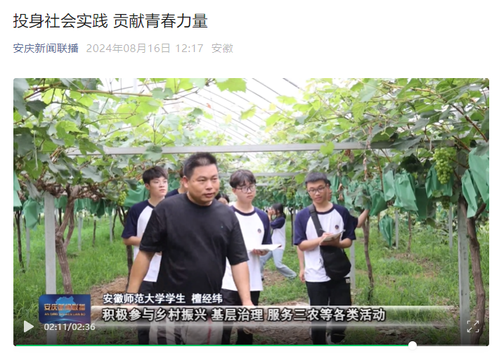 安徽师范大学学生 檀经纬“在开展志愿服务的同时,以发展新质生产力为导向,积极参与乡村振兴、基层治理、服务三农等各类活动,不断增强自己将来投身社会,建功立业的信心和决心。”