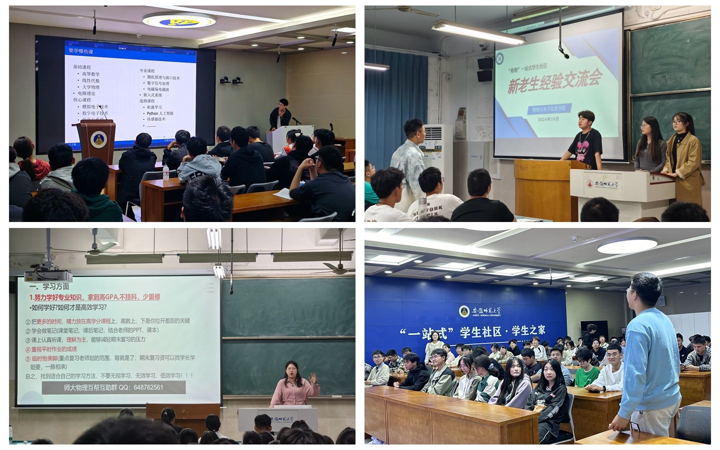 在“格物”社区和“求实”社区,来自物理学、电子信息工程、通信工程、光电信息科学与工程和自动化五个专业的优秀学生代表结合个人大学经历和收获,围绕专业学习、科研竞赛、第二课堂、志愿服务、学生工作、升学就业等方面,多角度、全方位为新生们提供了宝贵的经验和建议,为2024级新生奉上了一场授业解惑的精神“盛宴”。