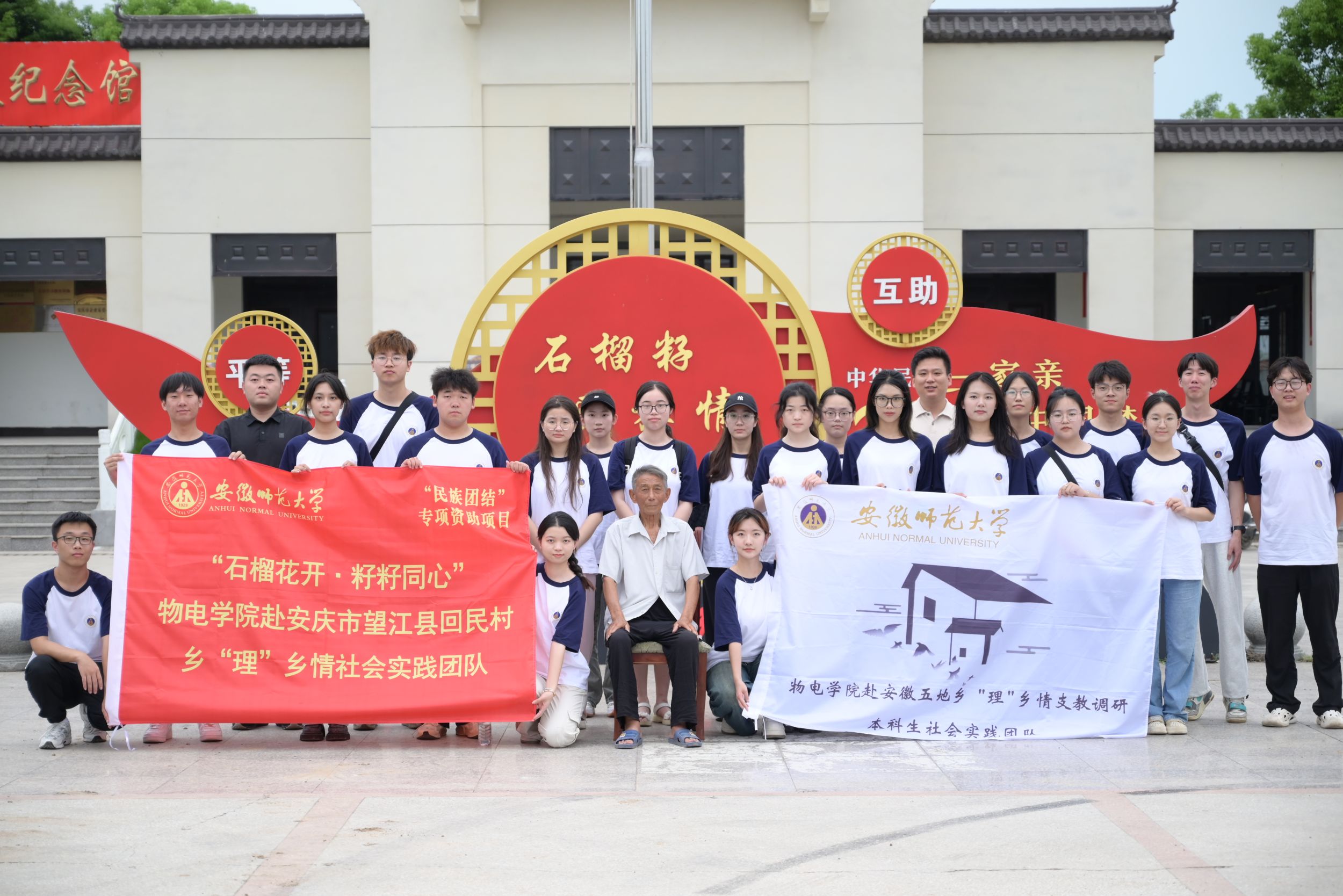 张津源与曹祥共同为实践基地揭牌,会后,团队指导教师与团队成员一同前往渡江战役纪念馆进行调研采访工作。