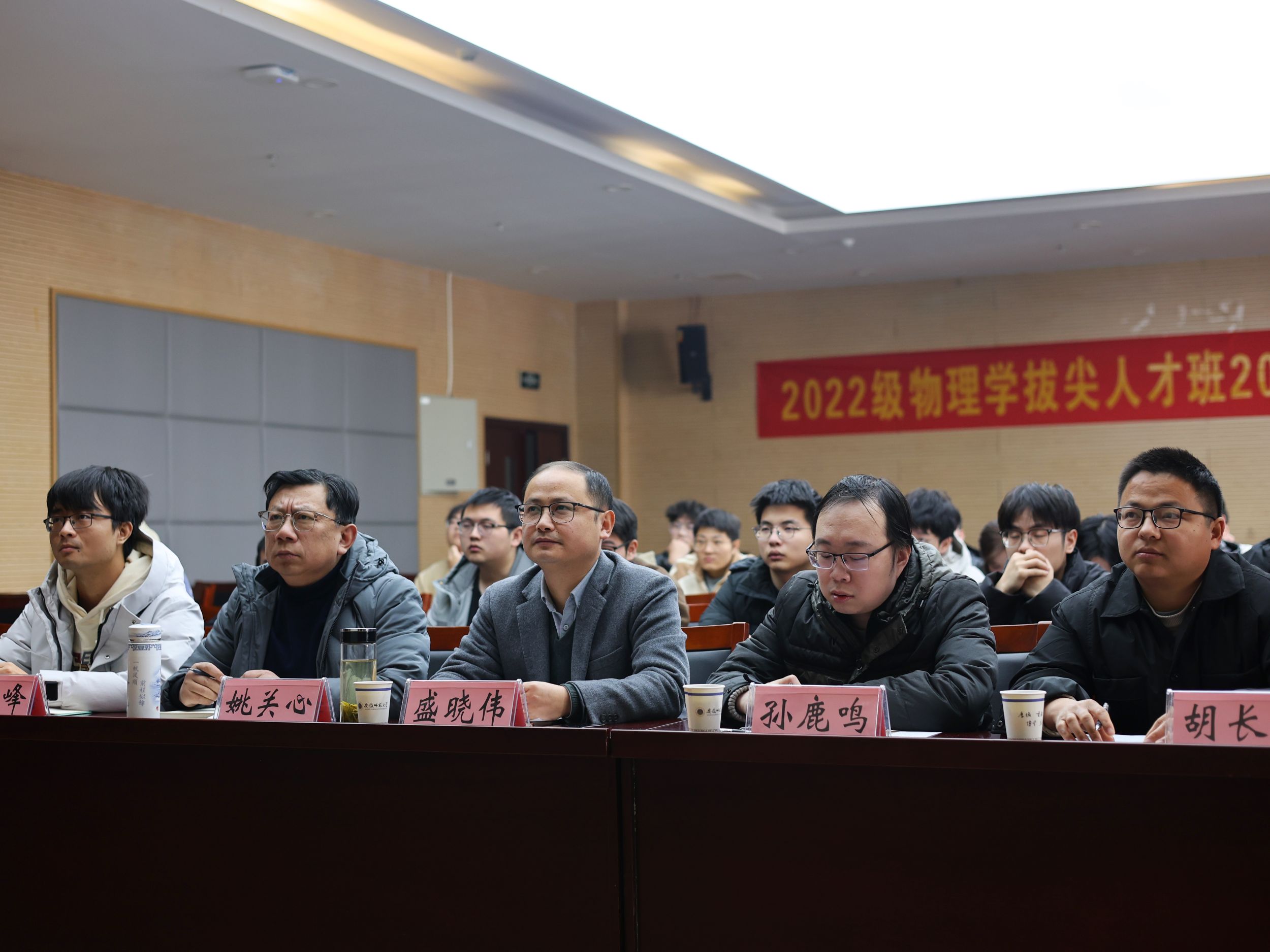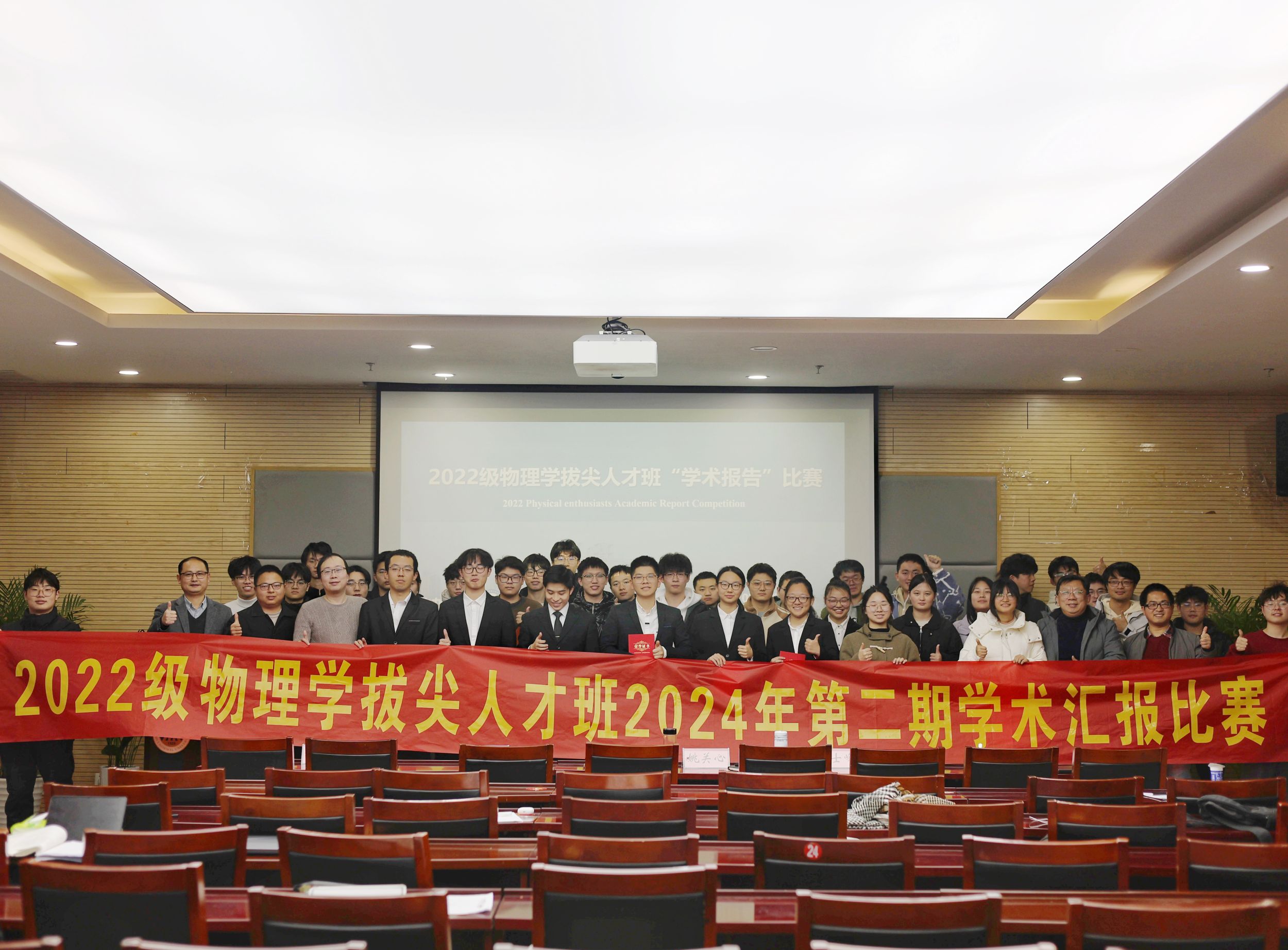 在物理楼304会议室举办了第六届物理学拔尖人才班“学术汇报”比赛,学院科研副院长盛晓伟、院物理学平台专业老师姚关心、孙鹿鸣、胡长生、钱士峰担任评委,2022级物理学拔尖人才班孙丹枫主持比赛,2022级物理学拔尖人才班全体同学观摩比赛。