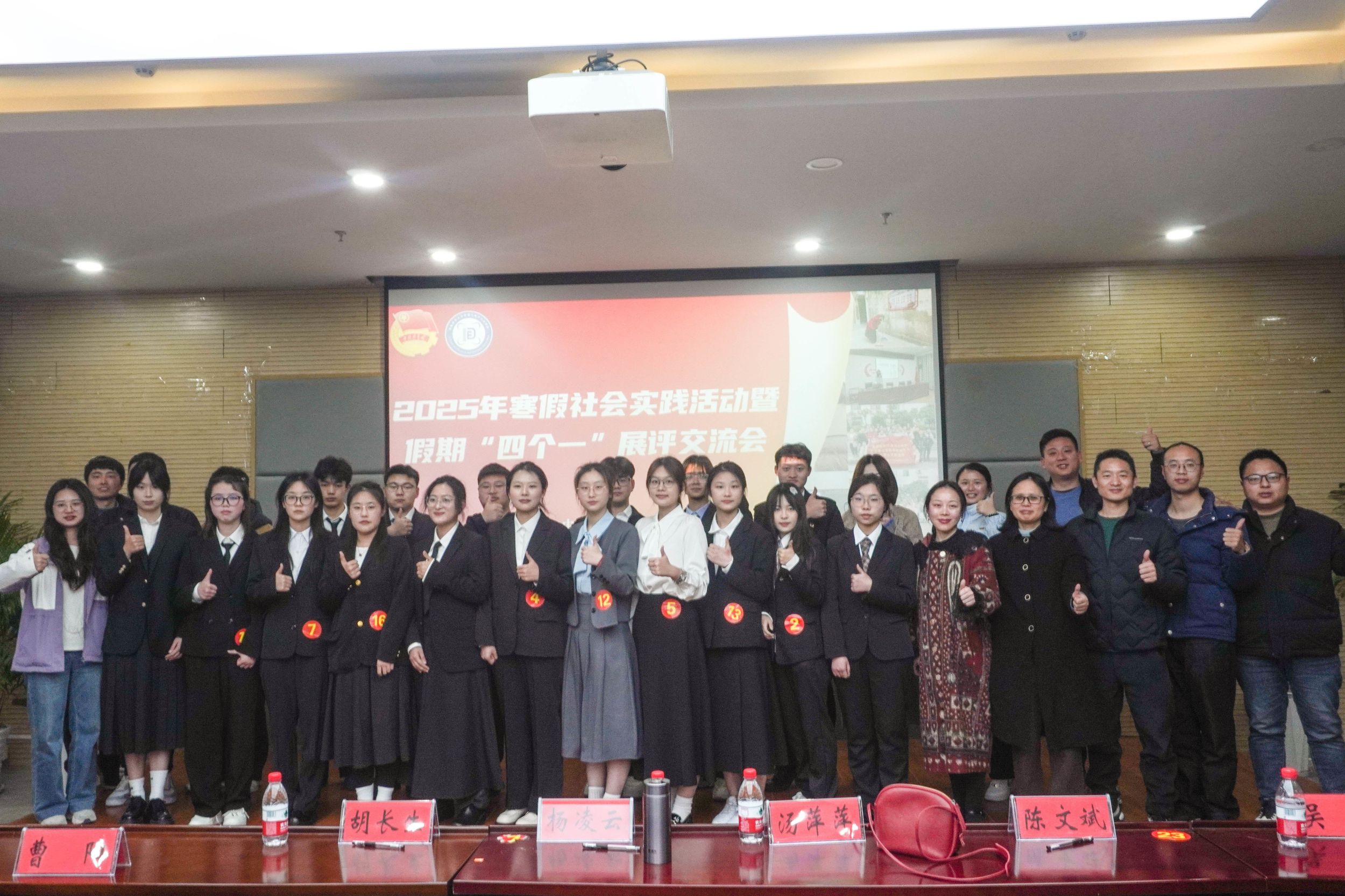在物电楼304会议室举办2025年“行走的思政课”寒假社会实践暨假期“四个一”展评交流会。学院专业课教汤萍萍、杨凌云、陈文斌、胡长生、吴勇及学院全体专兼职辅导员出席展评交流会,2024级各班级同学代表列席观摩学习。