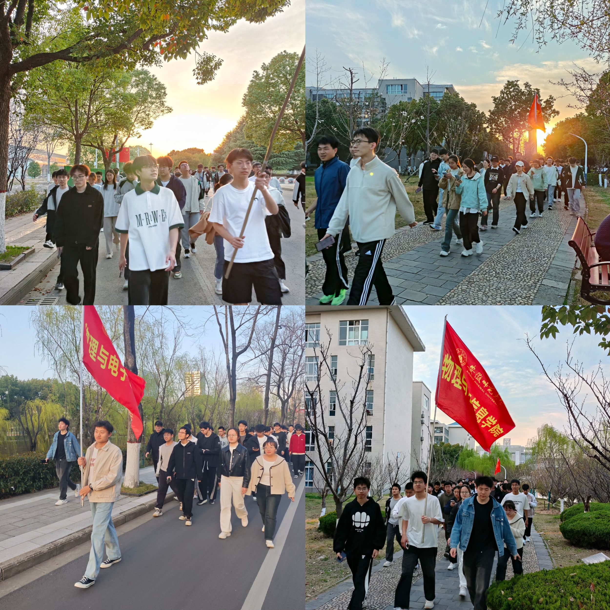 在领跑员带领下,同学们从物电楼前出发,沿民主大道向北途经望道楼,绕过文典楼沿科学大道向南经过敬文图书馆、明德亭,穿过花津河畔的鹅卵石小路,感受春天的气息,欣赏春日里的师大美景。沿科学大道继续向南,穿过化雨亭后沿民主大道回到物电楼前。2023级物理学的甘梦洋同学表示:“非常高兴能和大家一起跑跑跳跳,既能锻炼身体又可以欣赏师大美景,希望以后学院可以多多举办这种活动。”