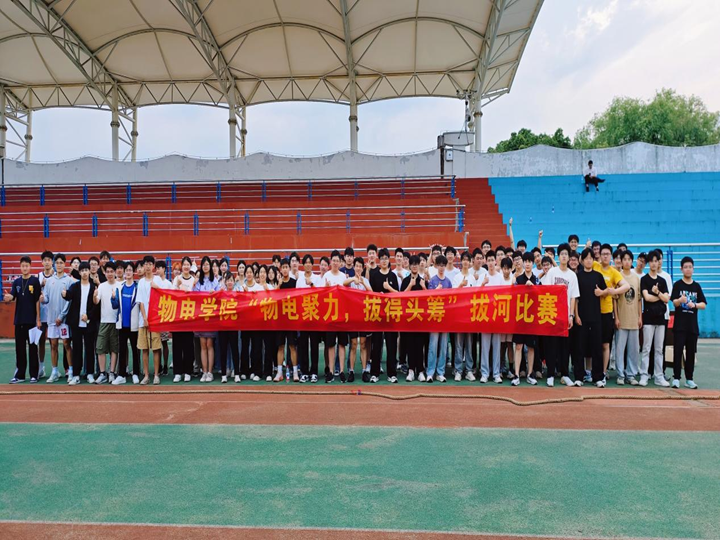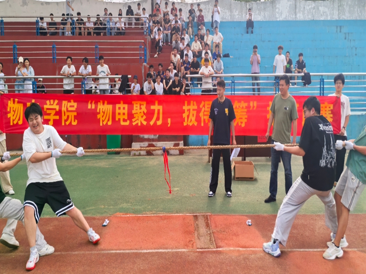 成功举办“物电聚力,拔得头筹”拔河比赛。本次活动共有来自2024级的7支队伍超160名学生参加,学院团委副书记、学生会指导教师邹孝龙,辅导员张津源参加活动。