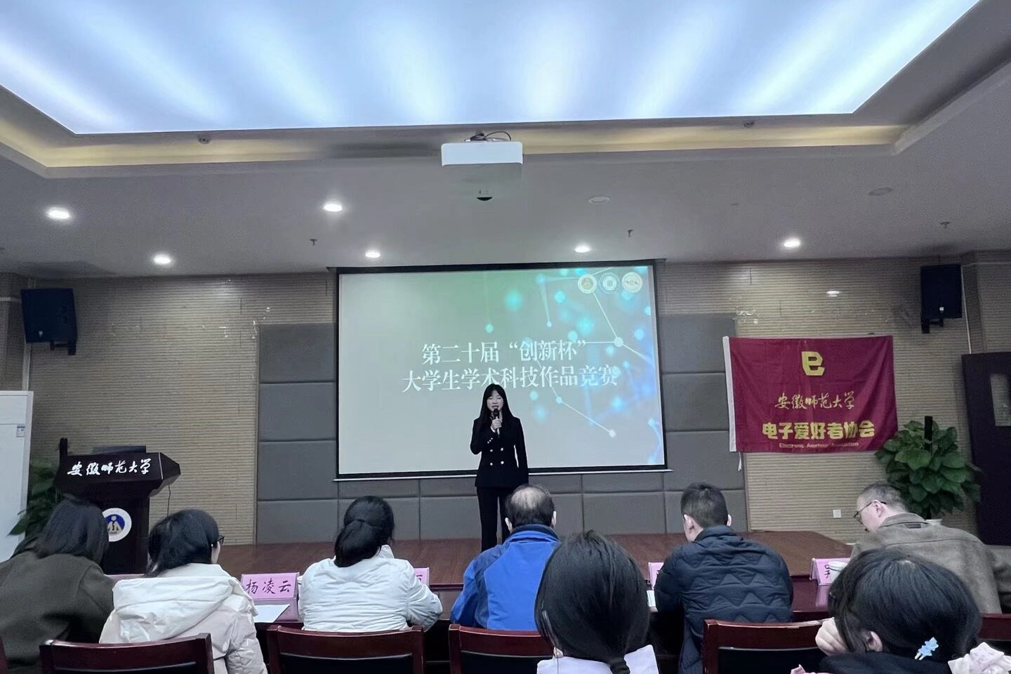 电子爱好者协会主办的第二十届“创新杯”大学生学术科技作品竞赛顺利举行。学院工科实训中心主任、电协指导老师蔺玉柱,电子专业教师王桂丽,通信专业教师杨凌云,自动化专业教师陈文斌,光电专业教师吴勇,电协指导老师张月停担任比赛评委。本届竞赛在传承往届经验的基础上持续创新,吸引了院内外各专业80余名学生到场观摩。