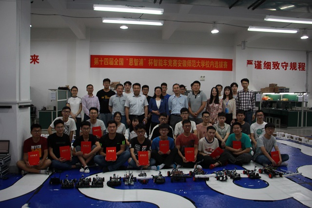 在实训中心举办第十四届全国“恩智浦”杯智能车竞赛校内选拔赛,共计12支队伍进入选拔环节,学院党委书记李娟,副书记黄友生,工科实训中心主任蔺玉柱,专业教师张道秧、王家驷、张辉,团委书记宋凤楼,专业教师和辅导员老师们到场参加选拔赛。