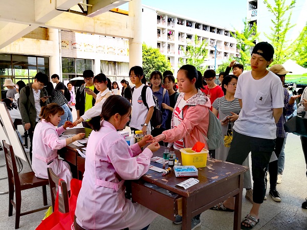 活动现场的服务工作做得十分到位。暮春时节的天气已有炎炎夏日的兆头,正午时分更是骄阳似火。校学生委员会为大家提供了大帐篷,同时安排了相关工作人员为大家供应热水。献血站的工作人员同样认真负责。医师们在为大家抽血化验的同时,还为大家准备了糖水。拿好化验单的同学丝毫没有畏惧之心,整整齐齐地排着队耐心等候。