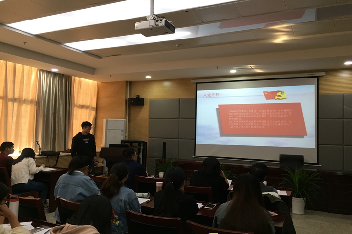 本次党员活动日第一部分进行拟发展对象汇报答辩,20位入党积极分子经抽签确定序号,依次使用PPT进行个人汇报,主要汇报个人在政治理论学习、专业学习、志愿服务、自身不足等方面内容;汇报结束后,答辩者从党的基本知识题库中抽取题目进行回答。全体答辩结束后,李娟老师对大家的表现进行总结并提出相应要求:第一,参加答辩的同学对党的基本理论和知识掌握较好,入党动机端正,同学们整体学习成绩综合表现较优异;第二,希望拟发展对象在日常学习生活中明确自身责任,严格要求自己,以实际行动向党组织靠拢,从身边小事做起、关心身边同学,积极发挥先锋模范作用。活动第二部门,张杰带领参会的全体成员学习陈宝生部长在新时代全国高等学校本科教育工作会议上的讲话,特别强调我们学生要多读书,读优秀传统文化经典、马列经典、中外传世经典和专业经典。因为通过读书我们可以更好地认识世界、了解国情民情,掌握事物发展规律,通晓天下道理,学会理性思考;另一方面要夯实专业学习基础,积极参加学科竞赛拓宽知识领域,脚踏实地、苦干实干。