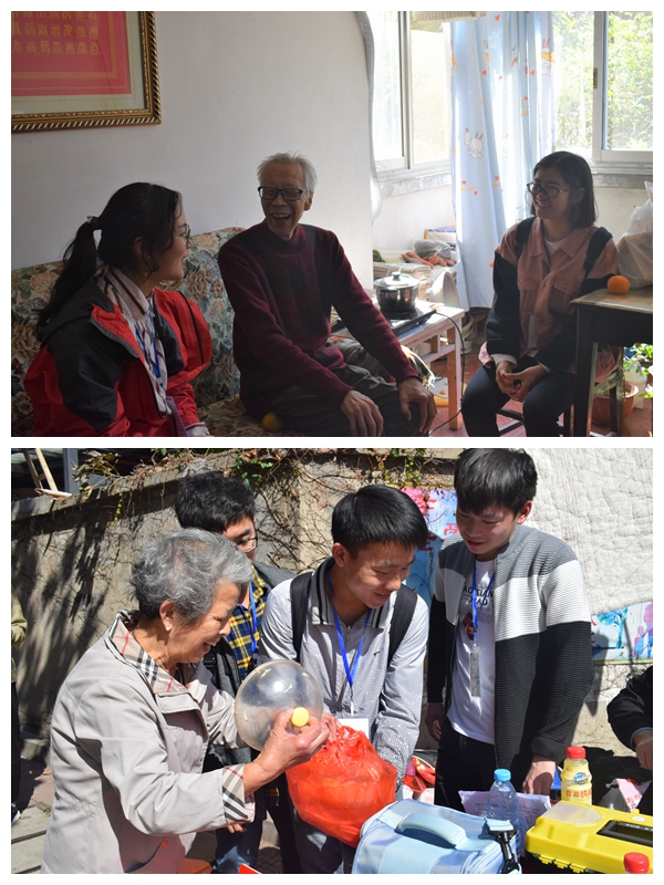 在活动期间,每到一家,团队成员都亲切地与老教师们促膝谈心,嘘寒问暖,仔细问他们生活与身体状况,向他们表达学校、学院对他们的关怀,同时还向退休老教师介绍了近年学校发展取得的成就,并衷心感谢老教师们对学校教育事业的关心和支持,也希望老同志们能一如既往地关注学校发展,积极建言献策。在看望已经82岁且独居的陈鼎老师期间,陈老师表示:一、感谢学校学院给予关怀,深感欣慰,深表感谢。二、鼓励年轻人抓紧时间,珍惜时光,在最应该拼搏年龄去奋力拼搏。团队志愿者听后,启发甚深。