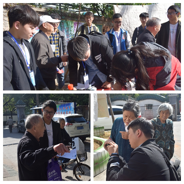 在活动开始前,团队负责人设计好宣传海报、单页,带队人提前去小区党群服务中心了解“五老”情况,并做好调查与数据统计。通过小区负责人了解“五老”生活情况,并登记在册,进行实地走访。针对年龄较大、独居、身体多病老人,我们有计划将团队分成四个小组,有组织、有计划去看望这些老人。
